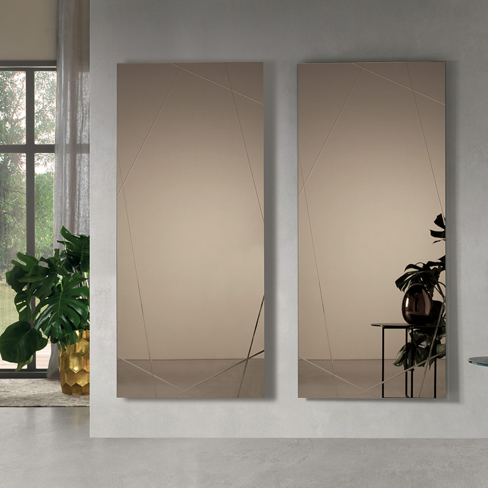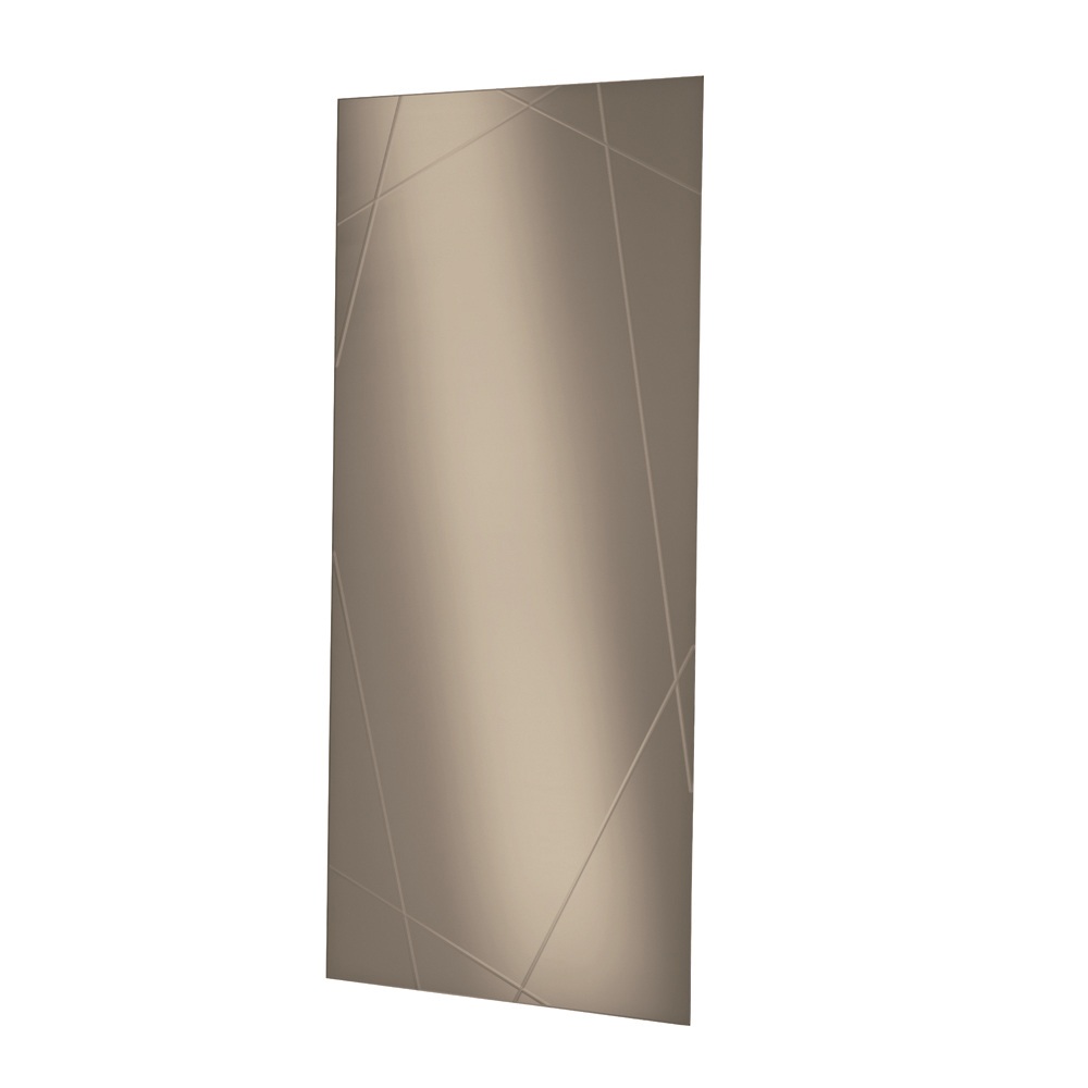 Oglinda are o formă dreptunghiulară, o grosime de 4 mm , și prezintă gravuri decupate cu laser care creează un model geometric elegant pe suprafață. Acest detaliu decorativ creează un joc rafinat de lumină și reflexii, conferind oglinzii profunzime și personalitate.