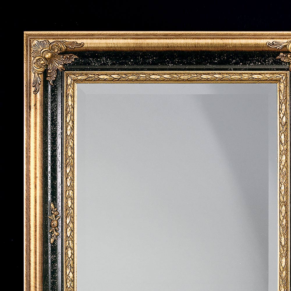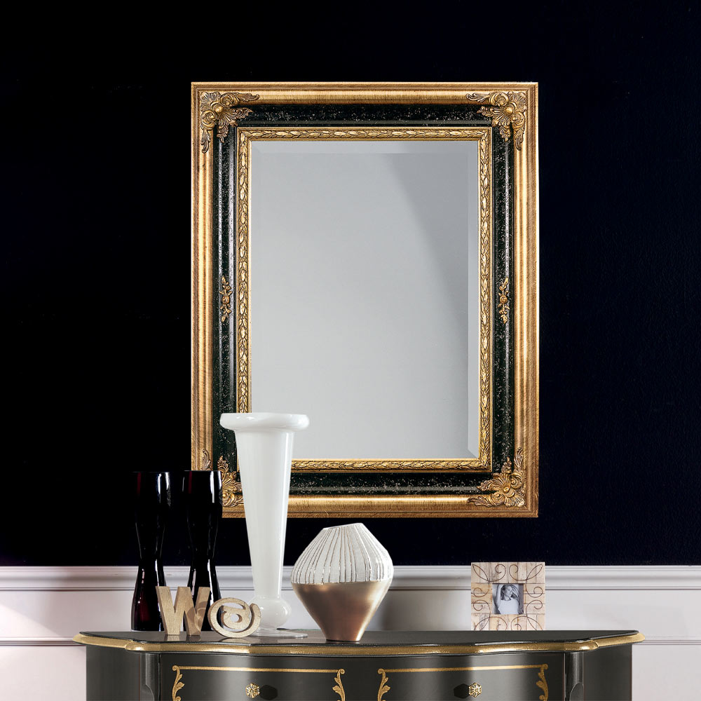 Oglinda dreptunghiulara eleganta cu rama din lemn decorata cu foita de aur si lac negru. Datorită stilului său clasic , această oglindă este ideală pentru a oferi oricărei camere o notă elegantă și luxoasă .