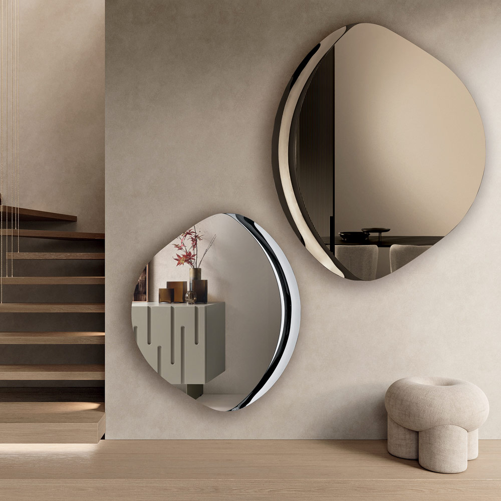Datorită esteticii sale sculpturale și proporțiilor elegante, această oglindă este un accesoriu de mobilier ideal pentru spații moderne și sofisticate, capabilă să amplifice lumina și să îmbogățească peretele cu o notă de design contemporan.