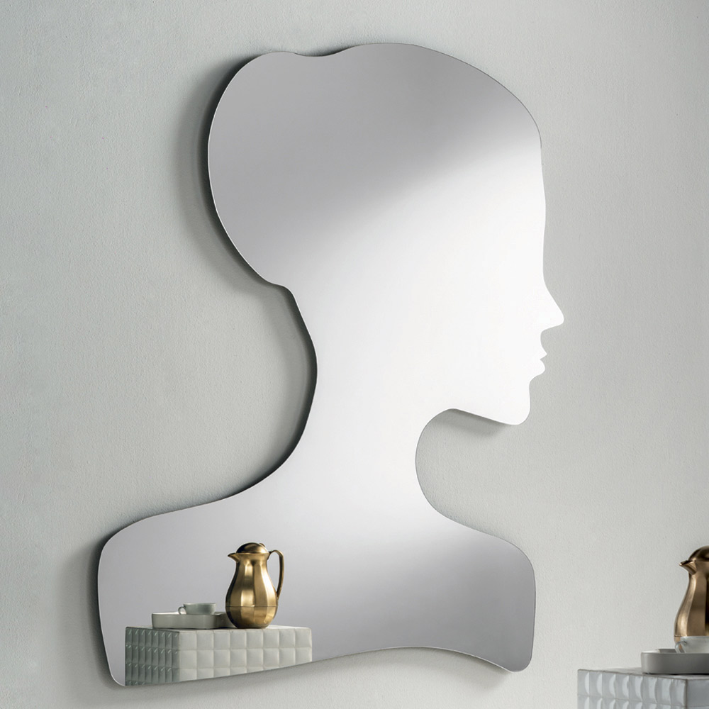Forma oglinzii reproduce profilul stilizat al unei fețe feminine , caracterizată printr-un coc încrețit , un gât subțire și umeri expuși . Această siluetă delicată creează o prezență elegantă și dramatică, transformând oglinda într-un element de mobilier cu un impact vizual puternic.