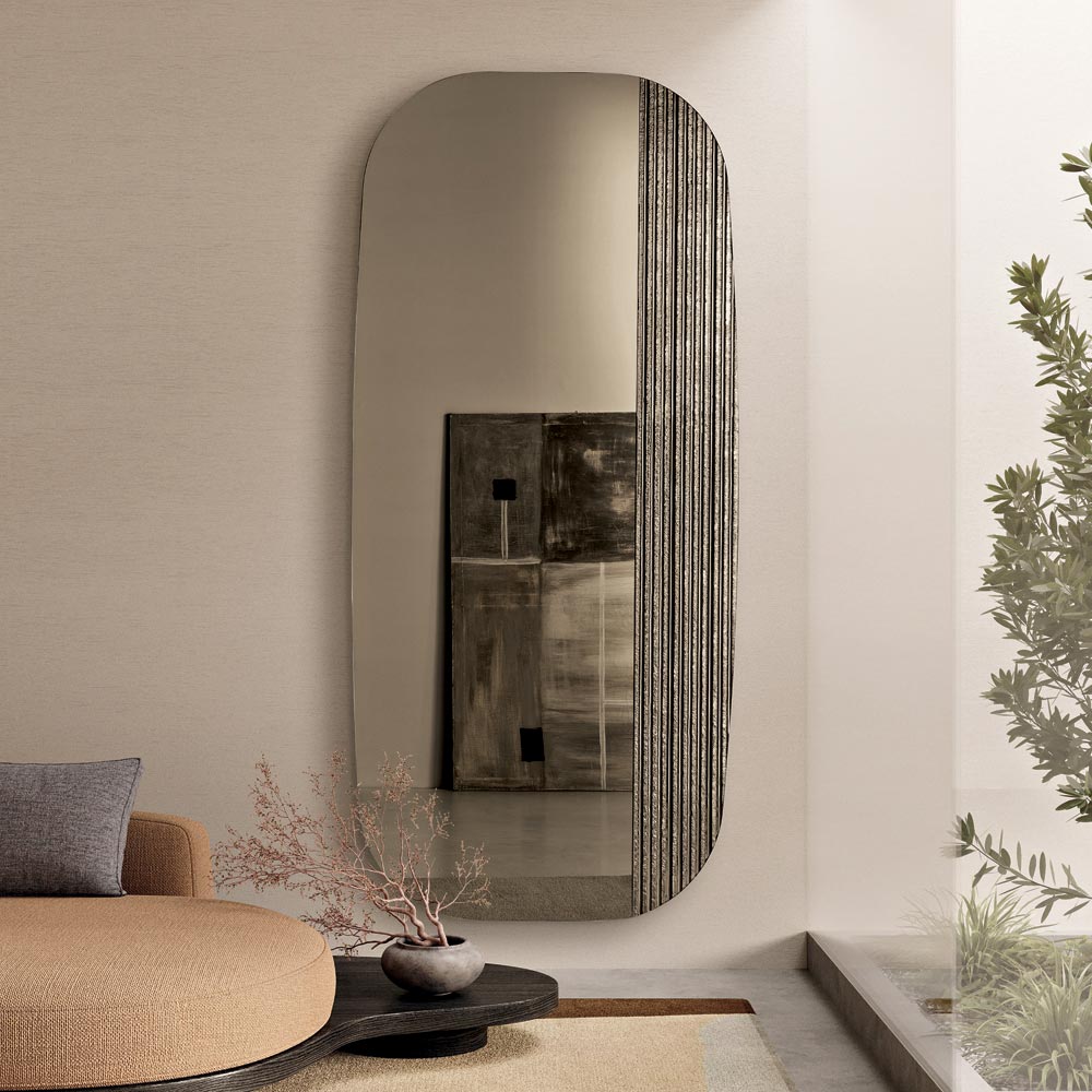 O oglindă de perete elegantă, de design, fabricată în Italia , ideală pentru a înfrumuseța spații precum holul de intrare , livingul sau dormitorul . Designul său contemporan combină linii delicate și detalii texturate, transformând oglinda într-un accesoriu decorativ capabil să decoreze elegant peretele.