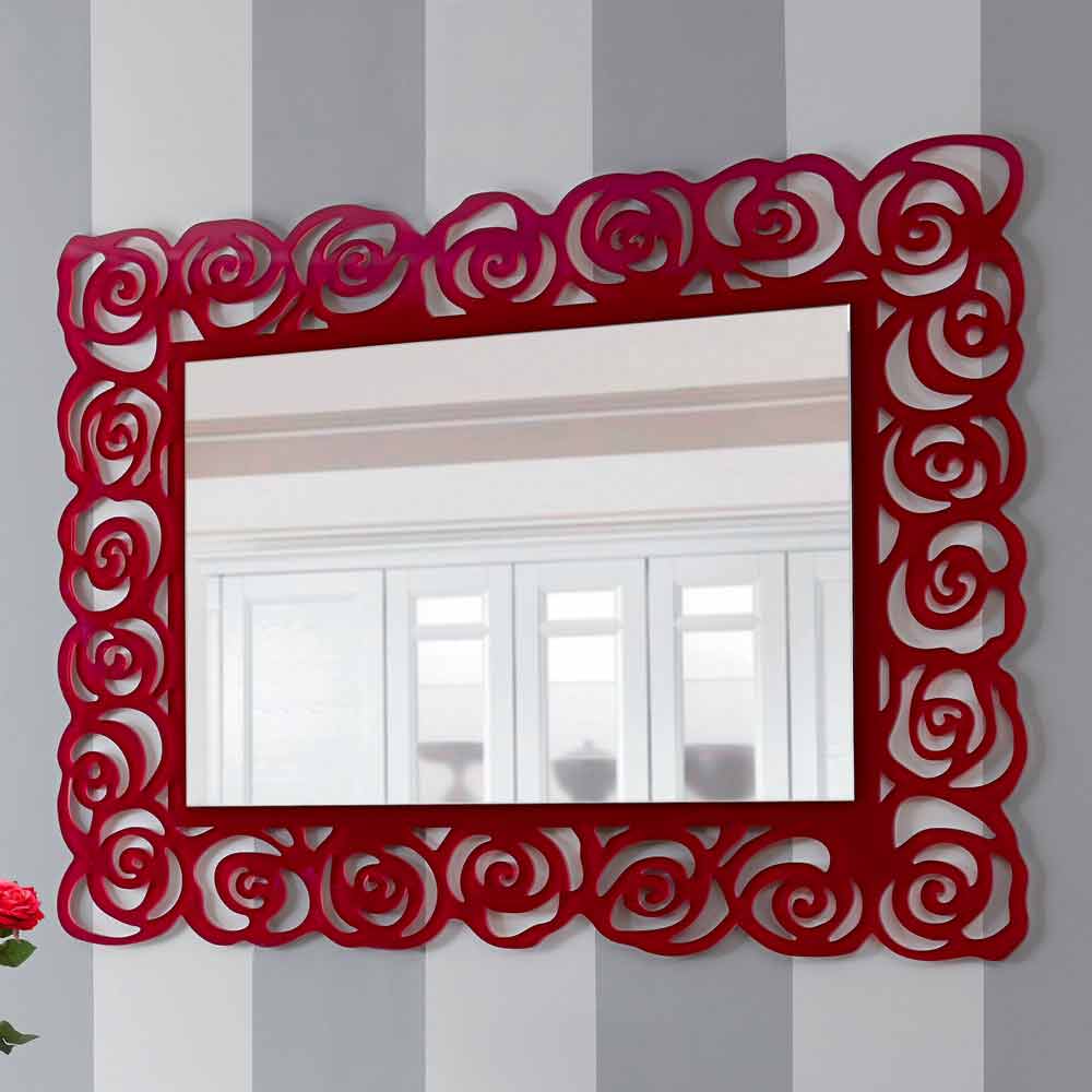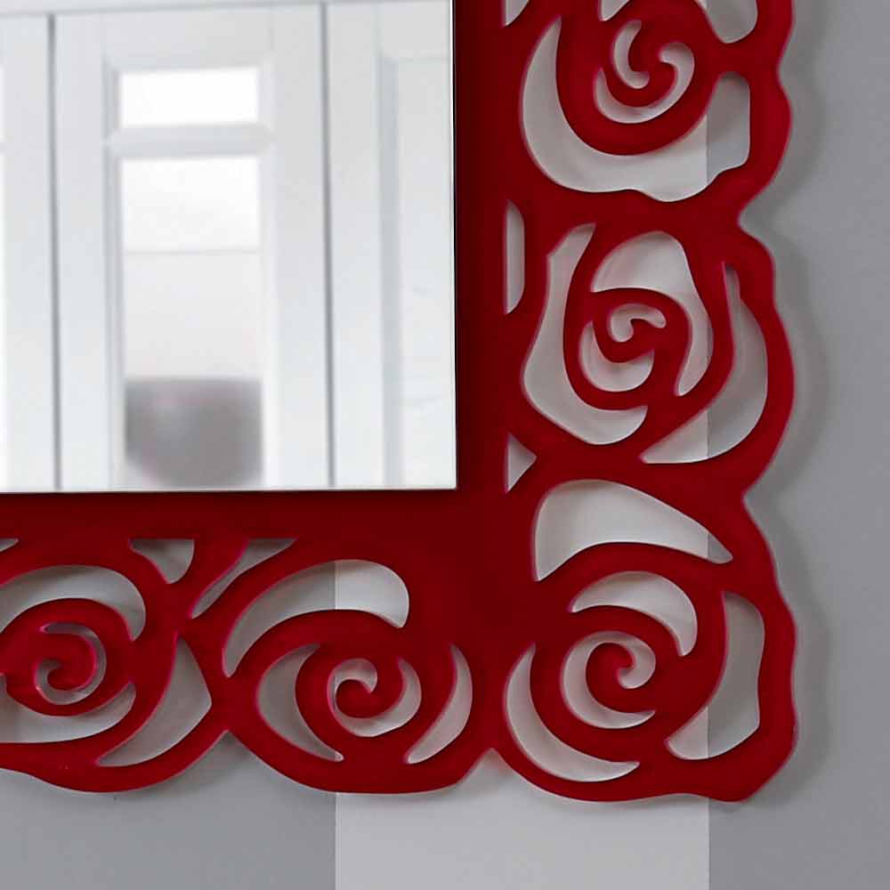 Oglindă dreptunghiulară modernă și elegantă, cu ramă de trandafir din plexiglas roșu, realizată în Italia.