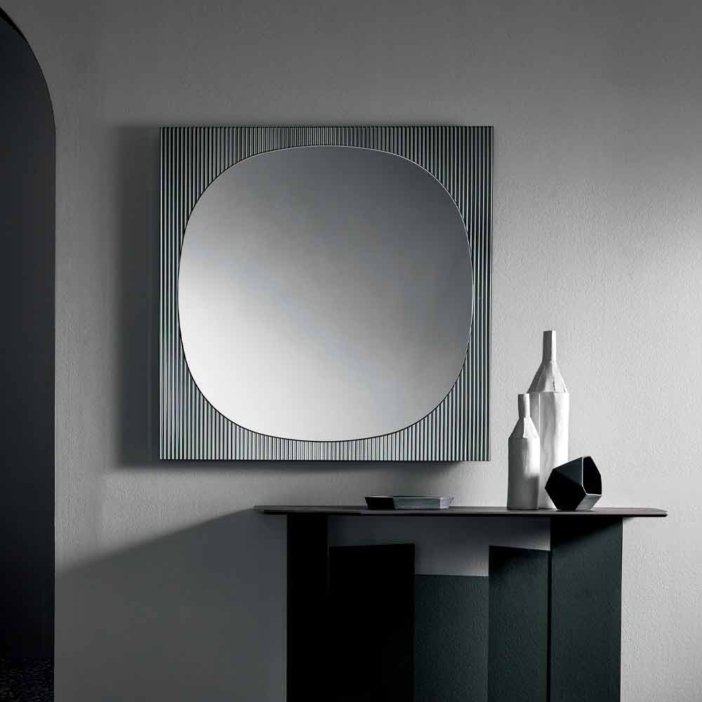Oglindă de perete pătrată în stil modern 100x100 cm cu sticlă fumuroasă, realizată în Italia de mână.