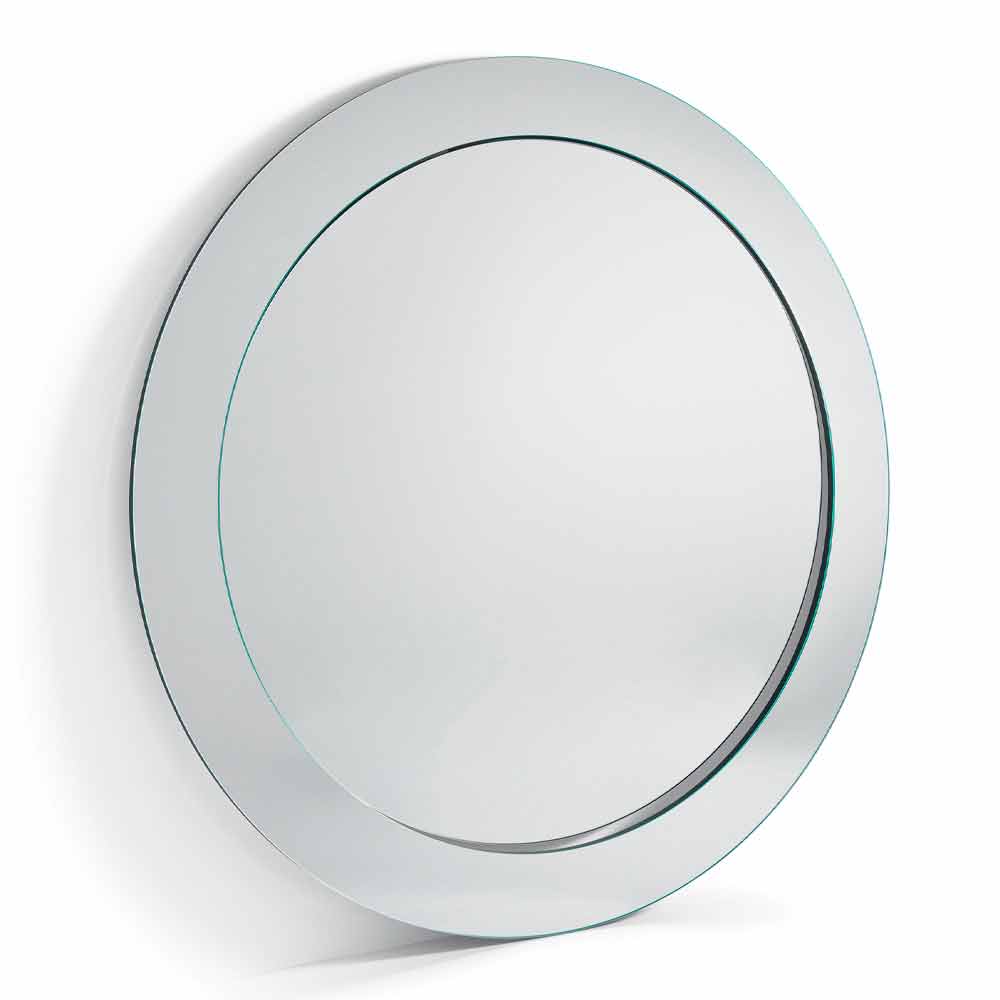 Oglindă modernă rotundă cu cadru înclinat, cu design modern, realizată manual în Italia.