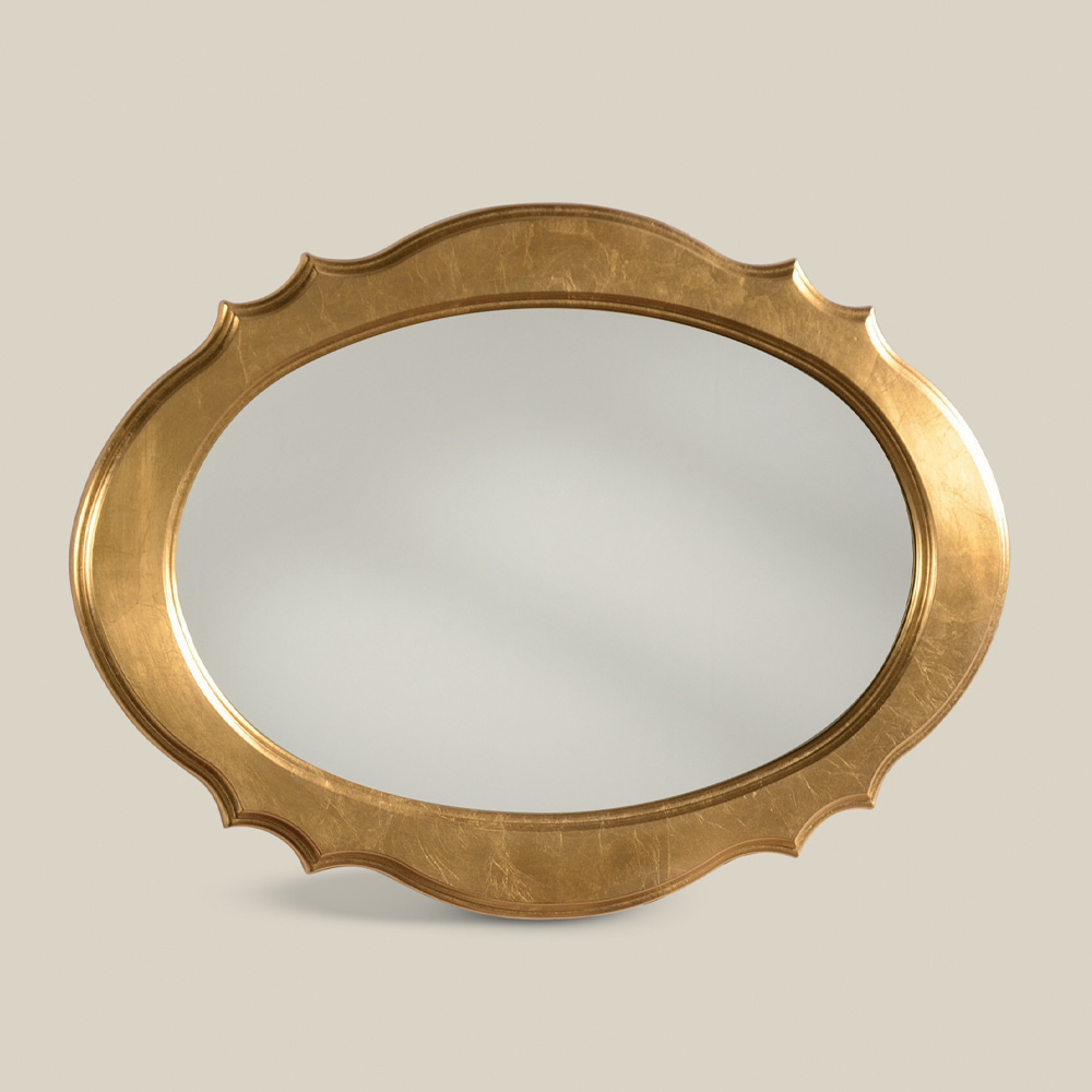 Oglinda de perete ovala in stil clasic, cu rama din lemn si decorata cu foita de aur eleganta , perfecta pentru a-ti decora livingul cu personalitate si gust. O completare unică și rafinată, realizată complet în Italia de meșteri pricepuți , maeștri ai artei care termină fiecare complement cu înțelepciune și gust pentru eleganță. Producția este realizată folosind materiale fine , iar lucrul este realizat manual cu cea mai mare grijă și profesionalism care distinge produsele Made in Italy .