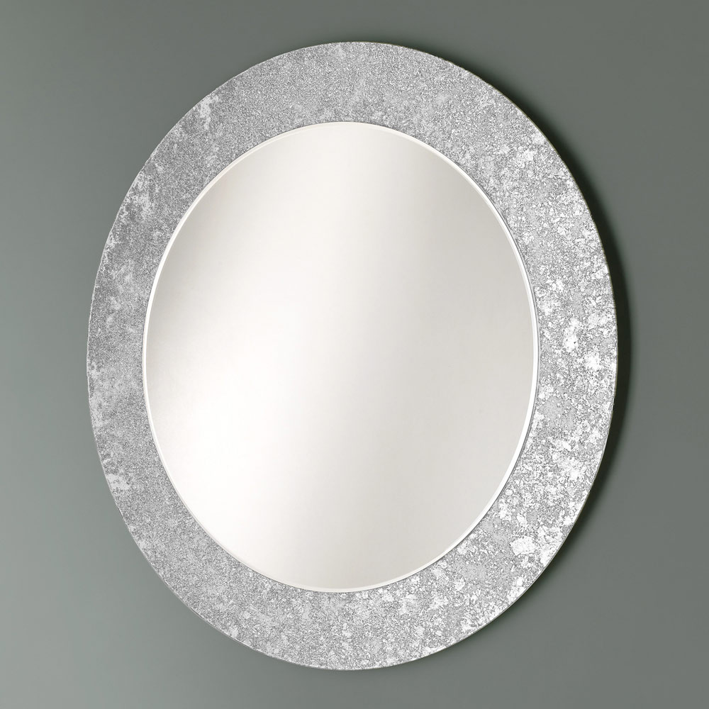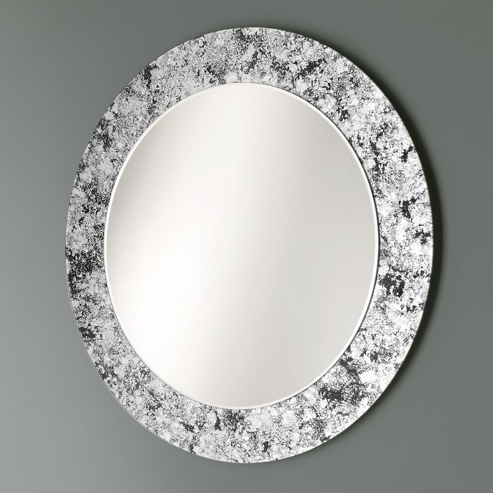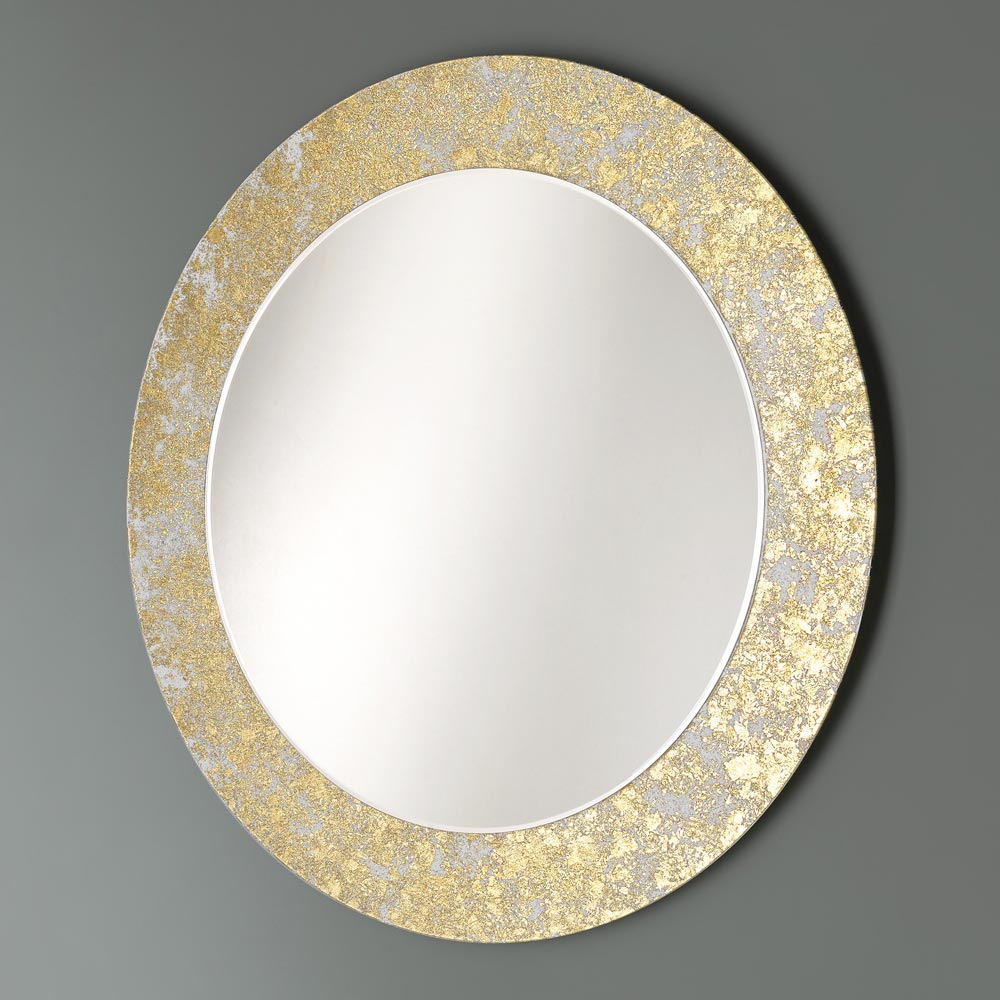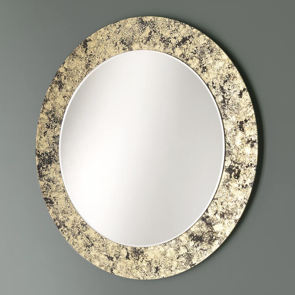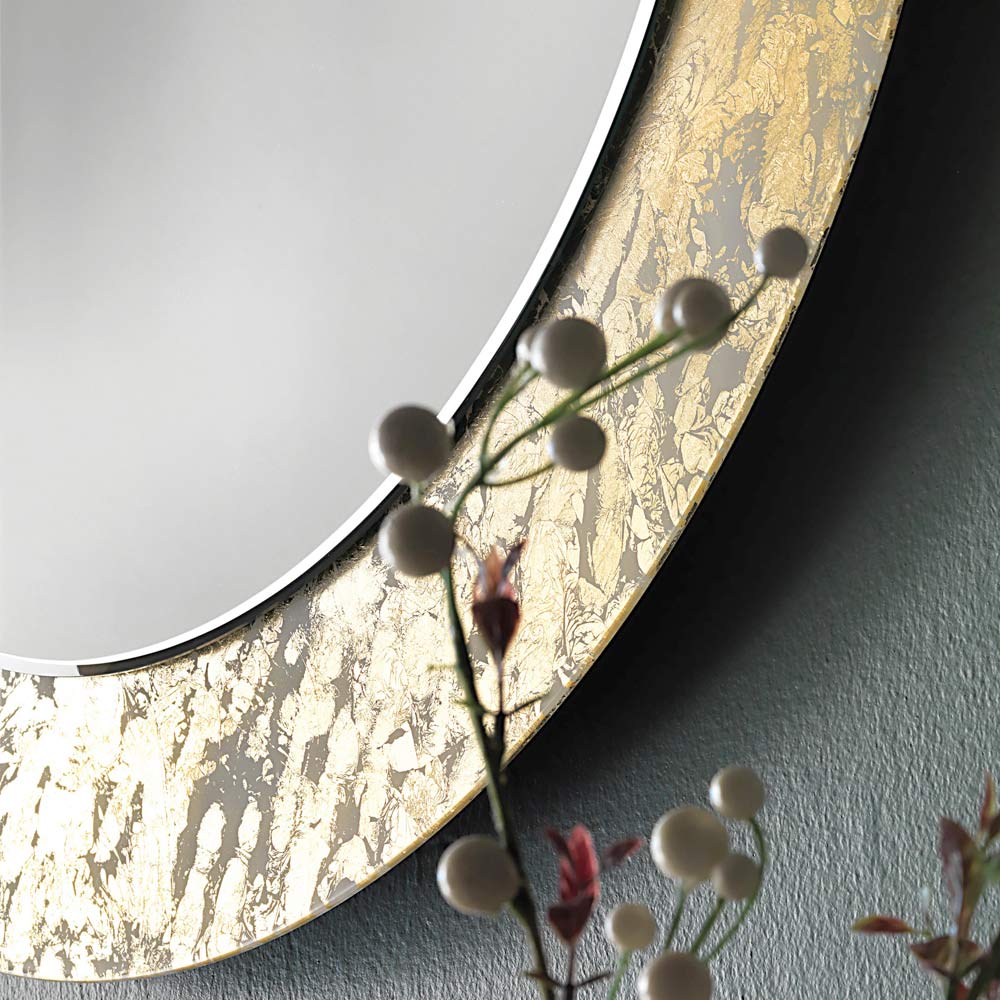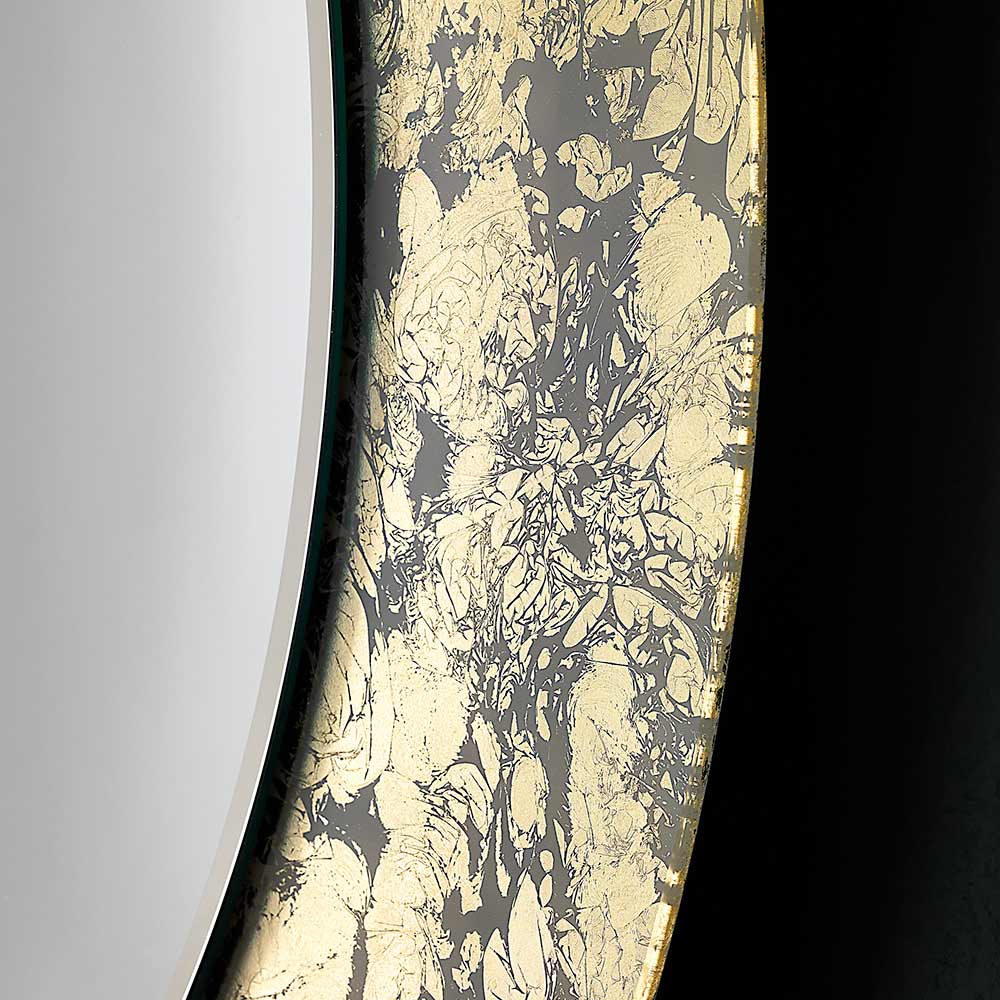 Oglindă decorativă rotundă de perete cu cadru din sticlă decorată cu frunze 4 finisaje fabricate în Italia.