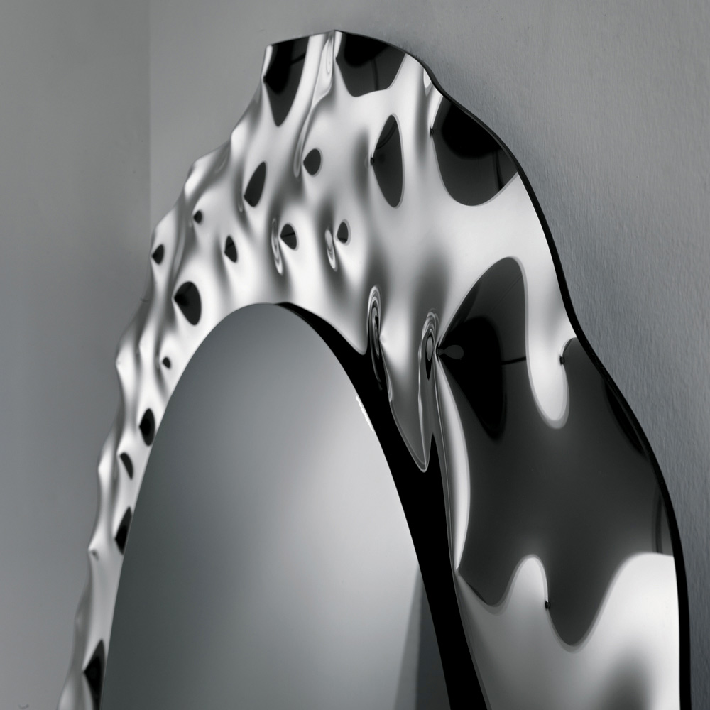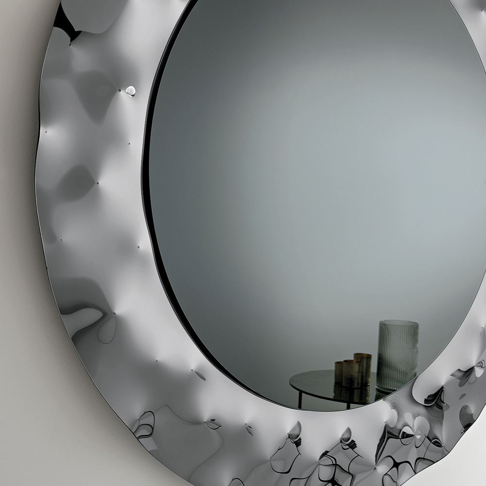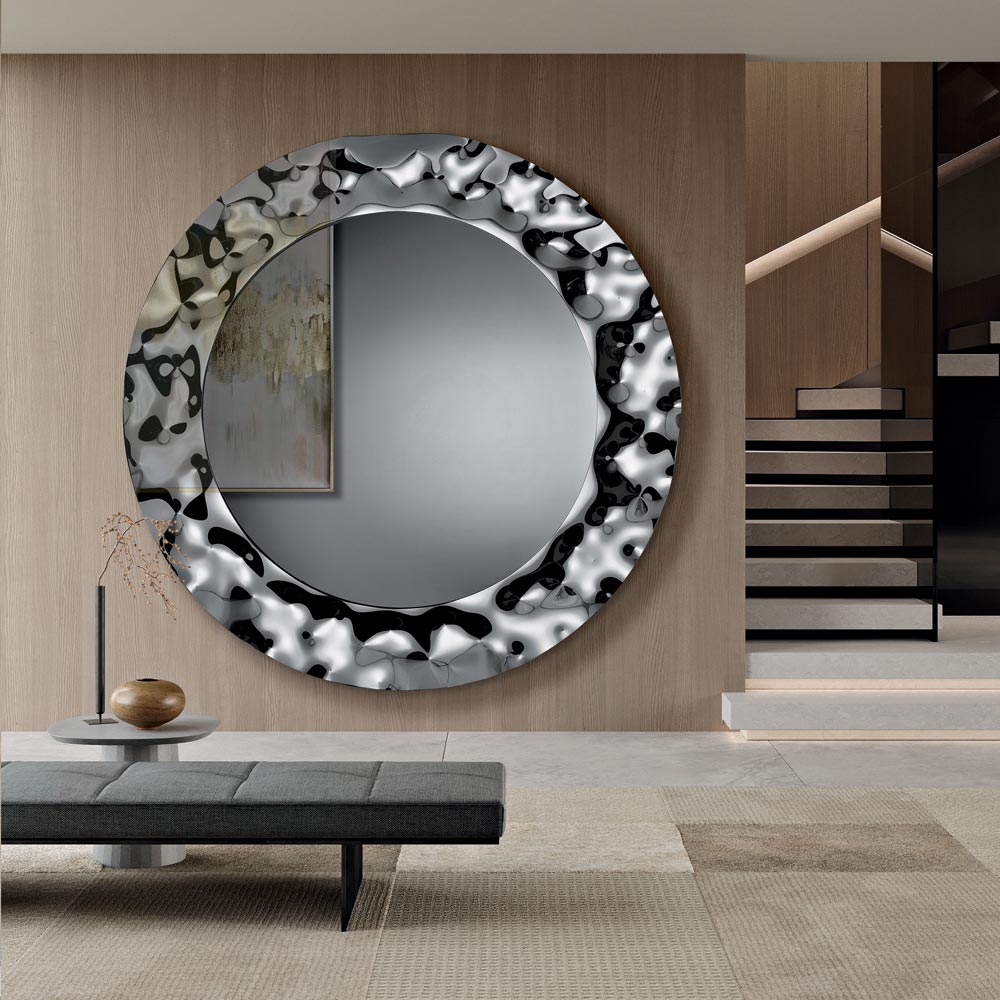 O oglindă de perete elegantă, de design, fabricată în Italia , ideală pentru a înfrumuseța spații precum holul de intrare , livingul sau dormitorul . Designul său rafinat combină linii delicate și detalii texturate, transformând oglinda într-un element cu adevărat decorativ, capabil să înfrumusețeze peretele.