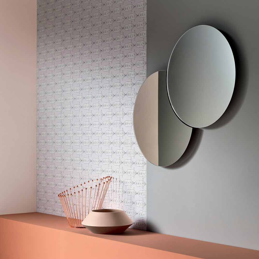 Oglindă rotundă de perete în stil modern cu satelit rotativ, realizată de mână în Italia.