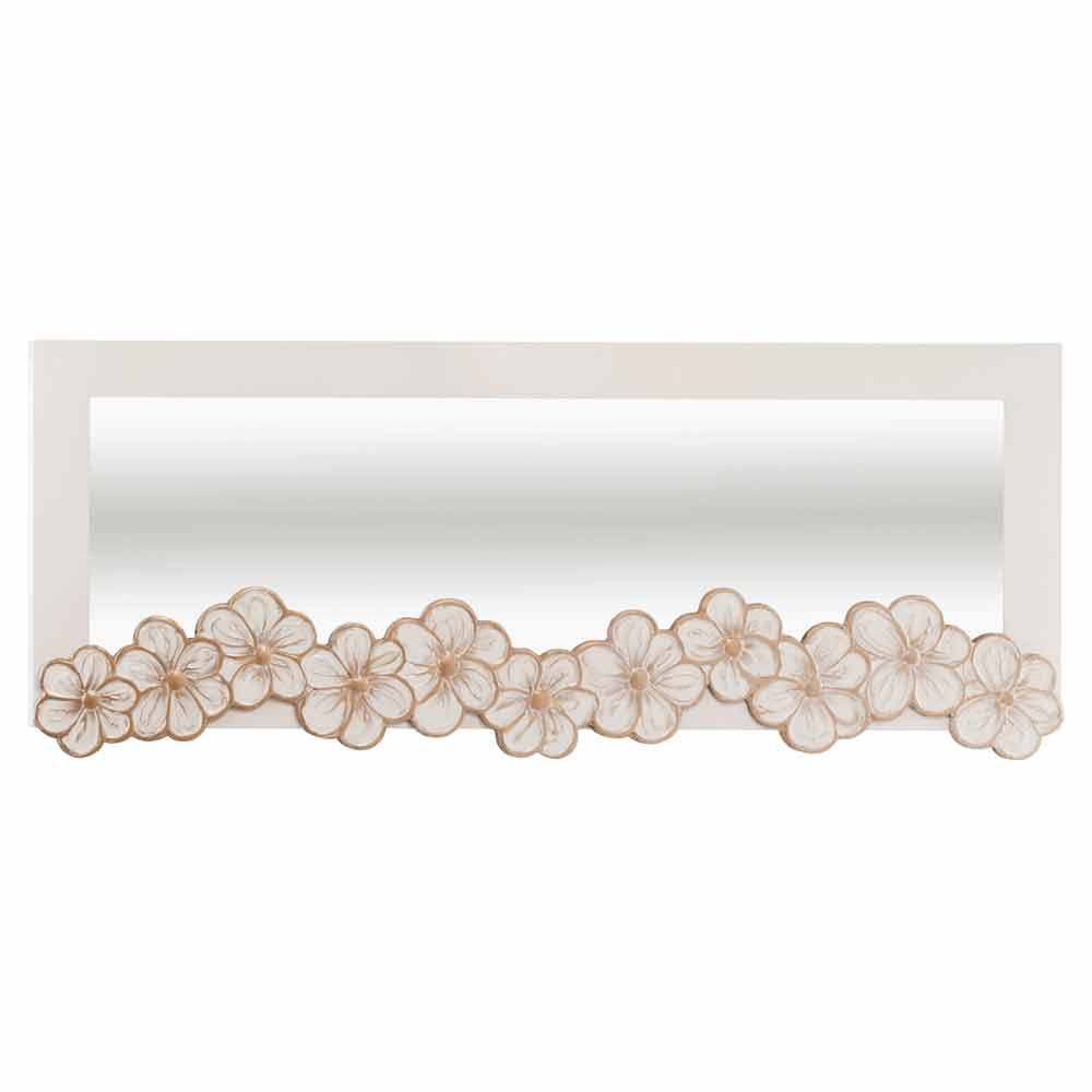 Senapina este oglinda în formă de perete cu un design care reamintește natura grație compoziției florale de pe o parte.
