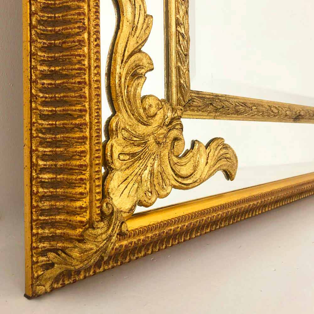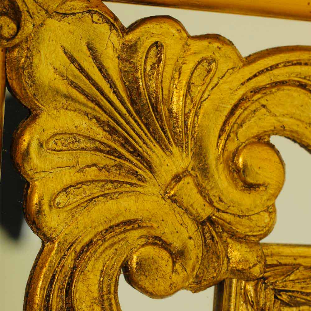 Această oglindă splendidă este un triumf al eleganței clasice , o adevărată bijuterie pentru locuință care îmbină funcționalitatea cu splendoarea estetică pură . Designul său bogat și complicat surprinde esența luxului, cu fiecare sul și sculptură strălucind cu aurire fin aplicată, amintind de opulența caselor istorice italiene.
