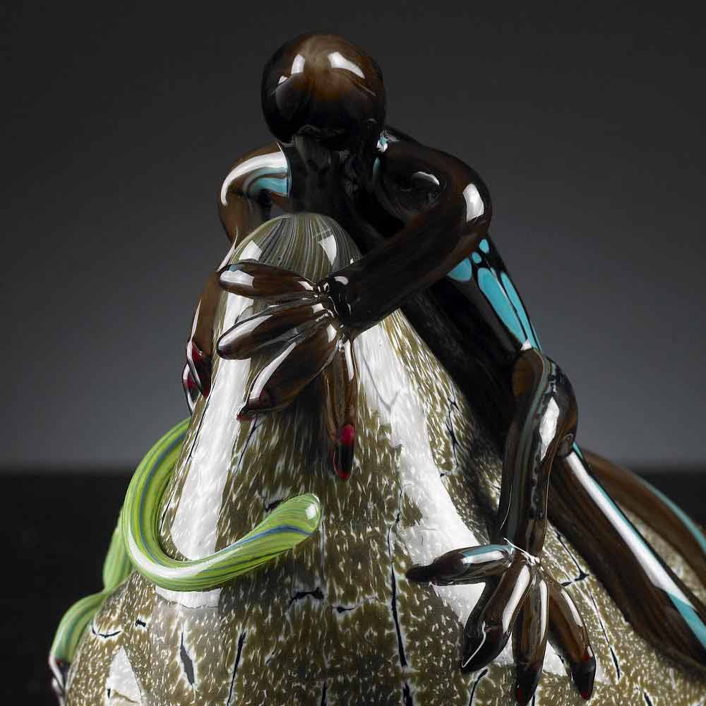 Statuie în formă de șopârle pe o piatră din sticlă colorată fabricată în Italia, lux.