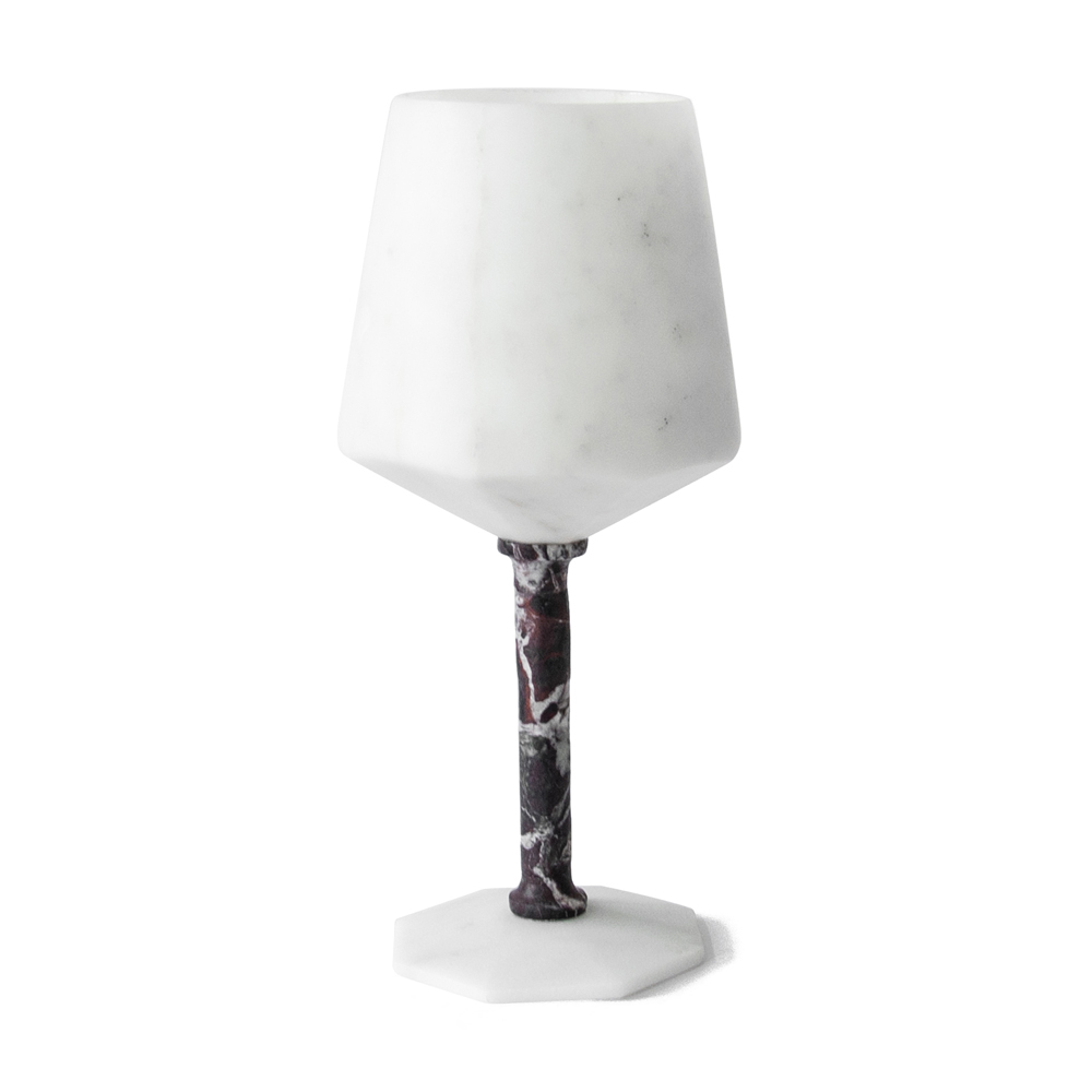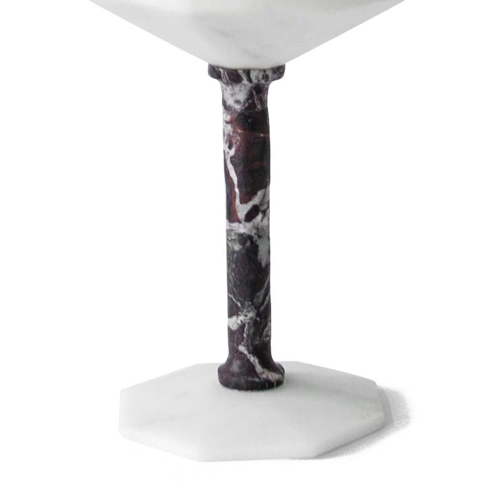 Pahar de vin din marmură albă de Carrara satinată și roșu Levanto, design realizat în Italia.