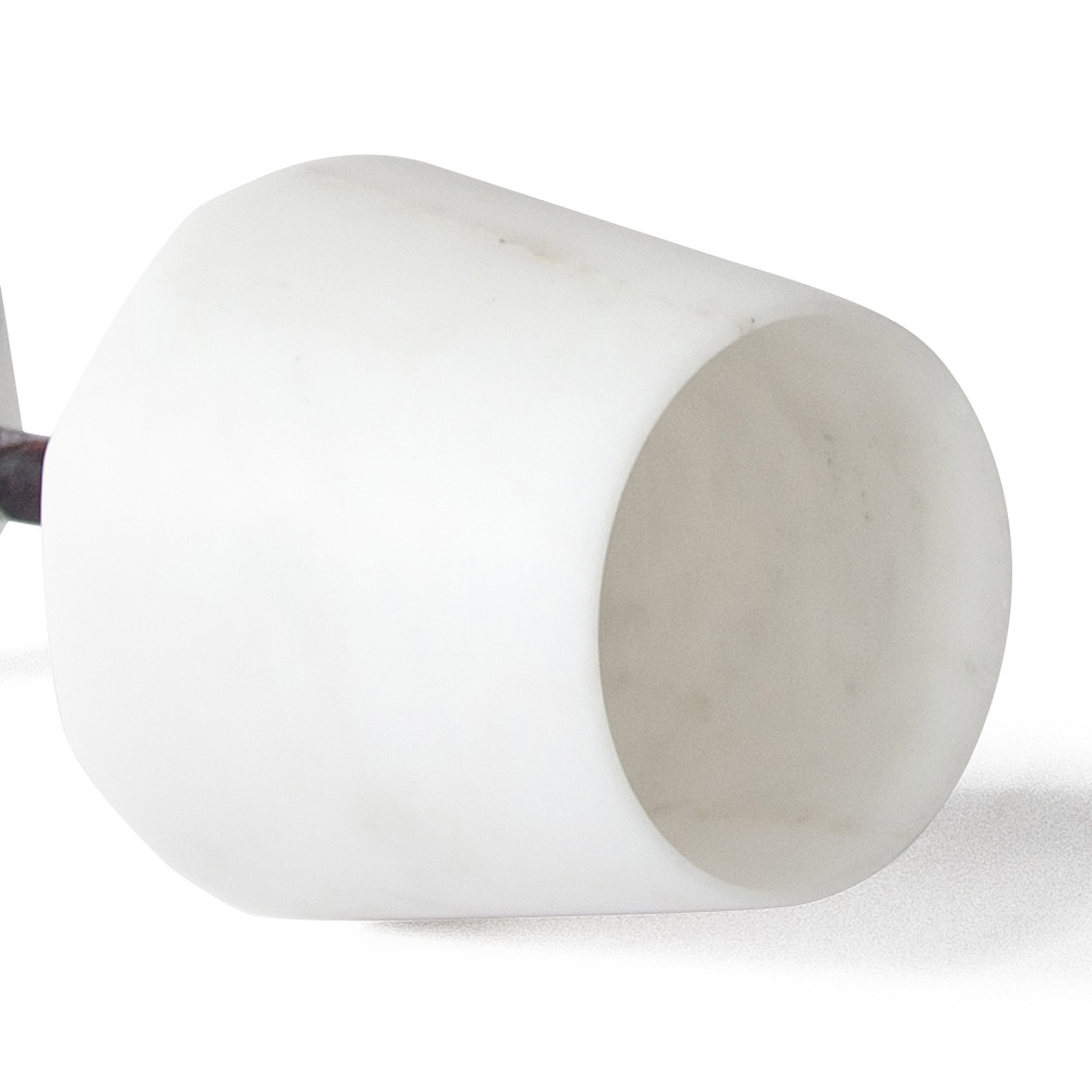 Un design sofisticat și rafinat capabil să devină protagonist în mediul de destinație datorită esențialității sale subliniate de băutor și piciorul din marmură de Carrara alb satinat și tija de marmură roșie Levanto.