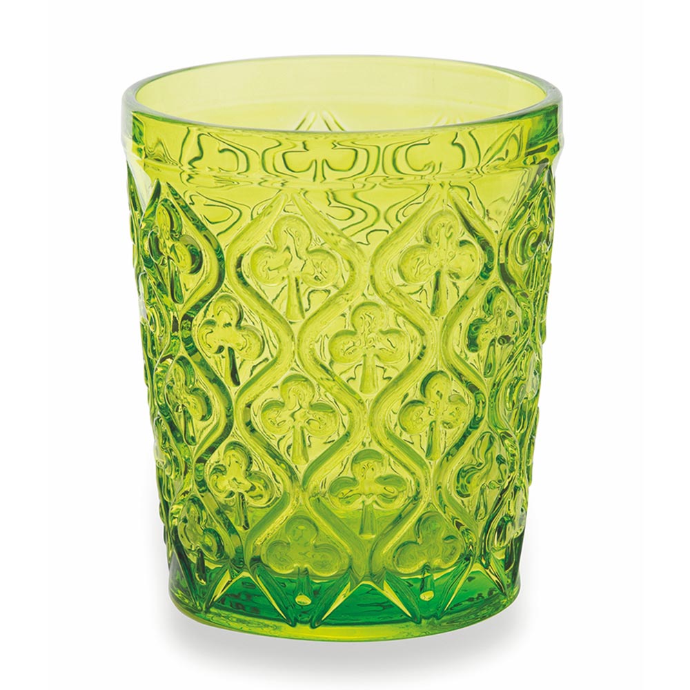 Set pahare cu apa din sticla colorata si decor arabesc, 12 bucati.
