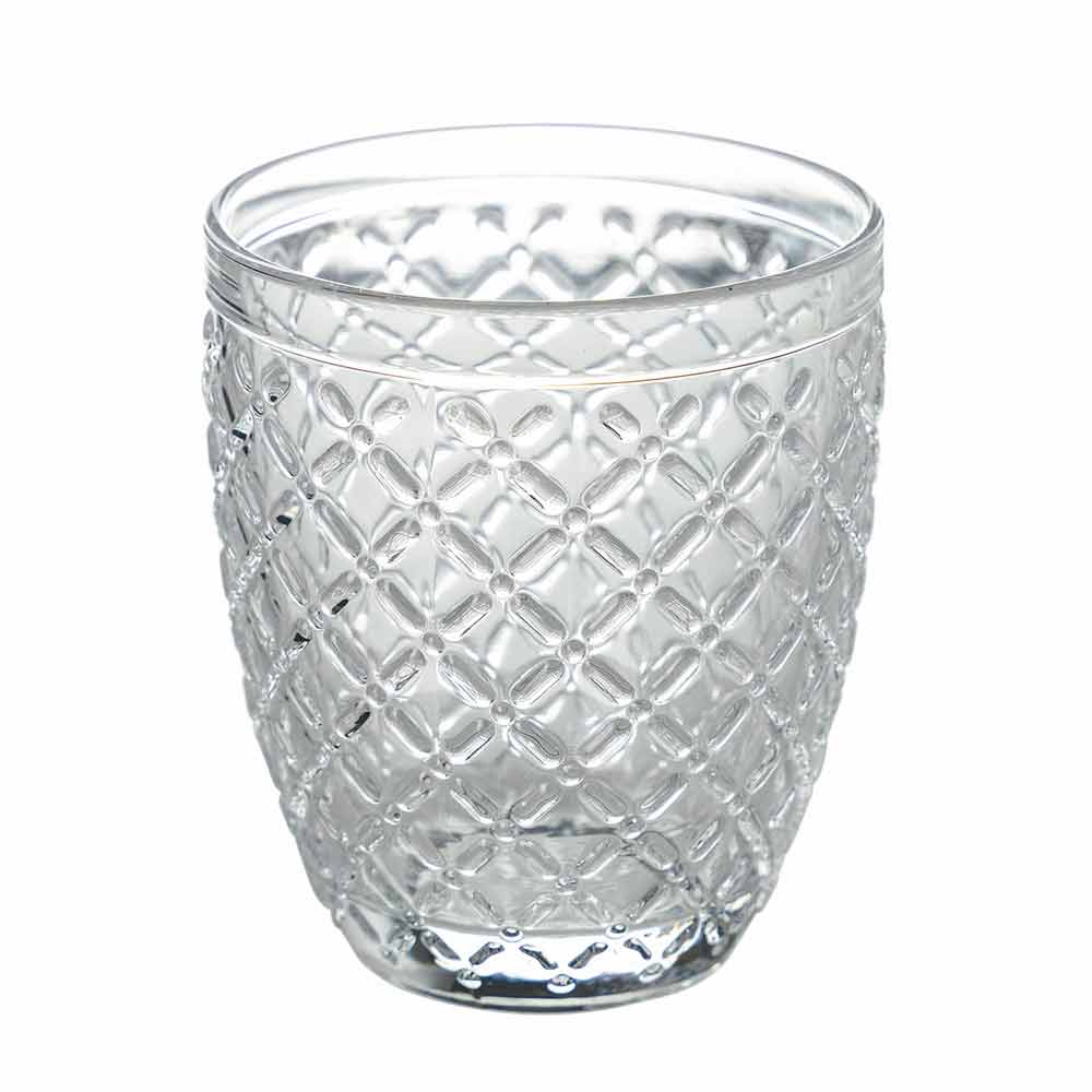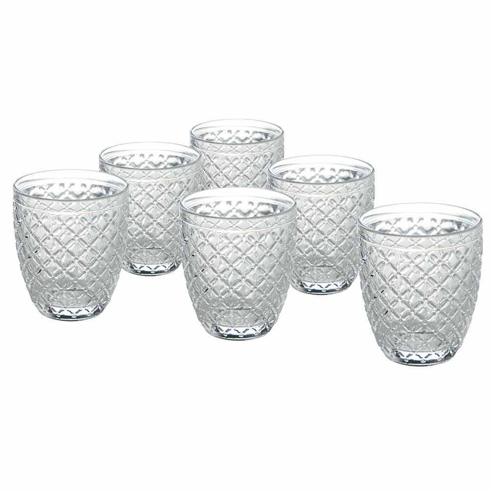 Set de pahare de apă colorate transparente în sticlă cu decorațiuni sculptate, 12 bucăți.