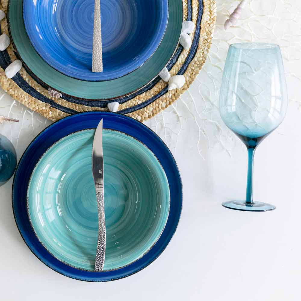 nuanțele de albastru ne duce la nuanțele de verde acvatic, întâlnind neutralitatea plăcută a albului, creând o atmosferă