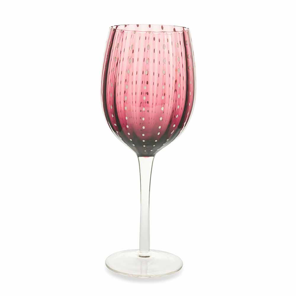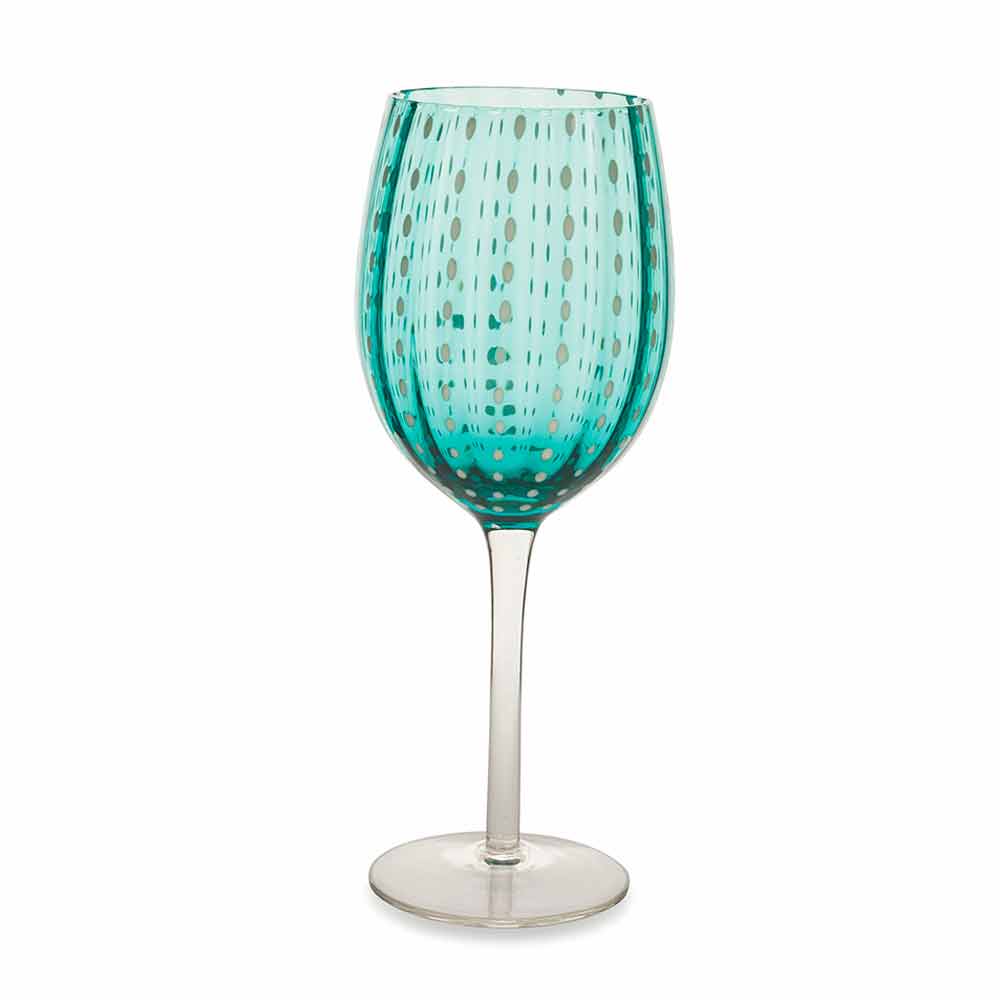 Pahare de vin din sticlă cu tulpină transparentă și cană colorată și decorată, 12 bucăți.