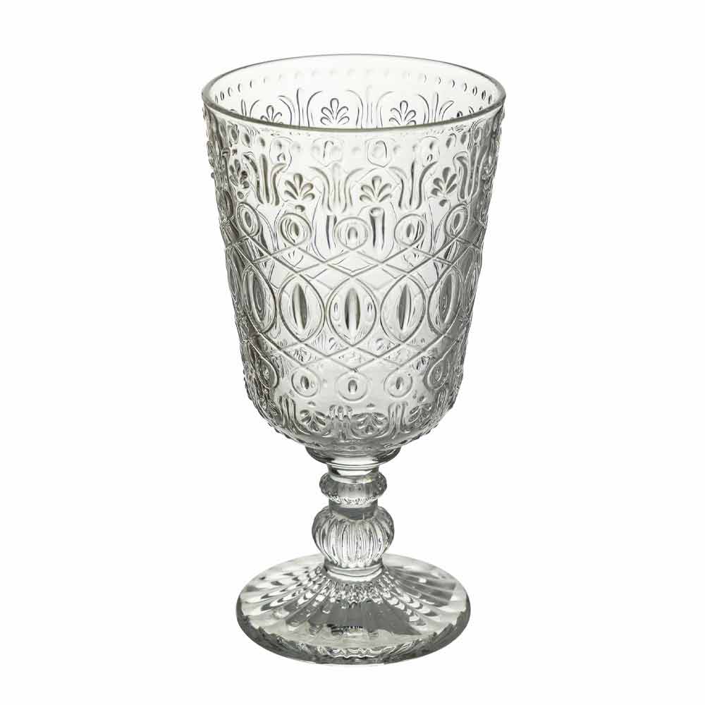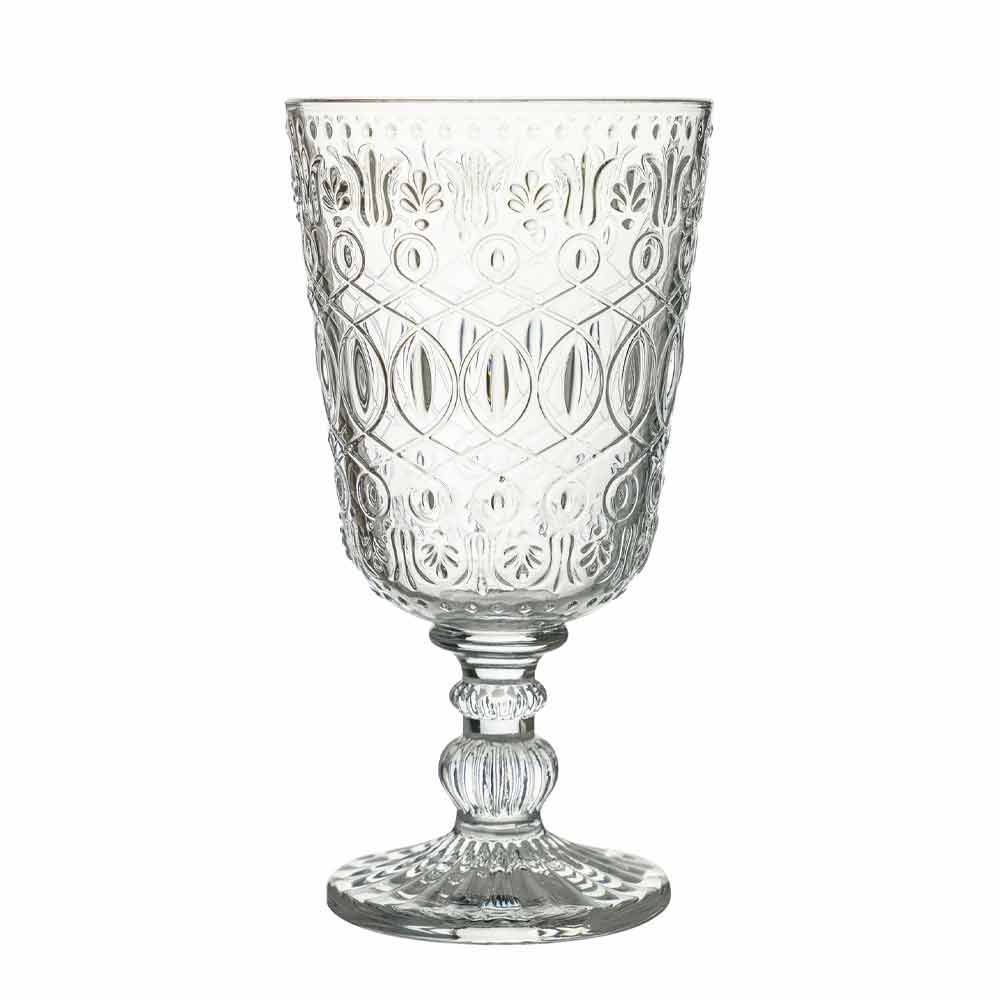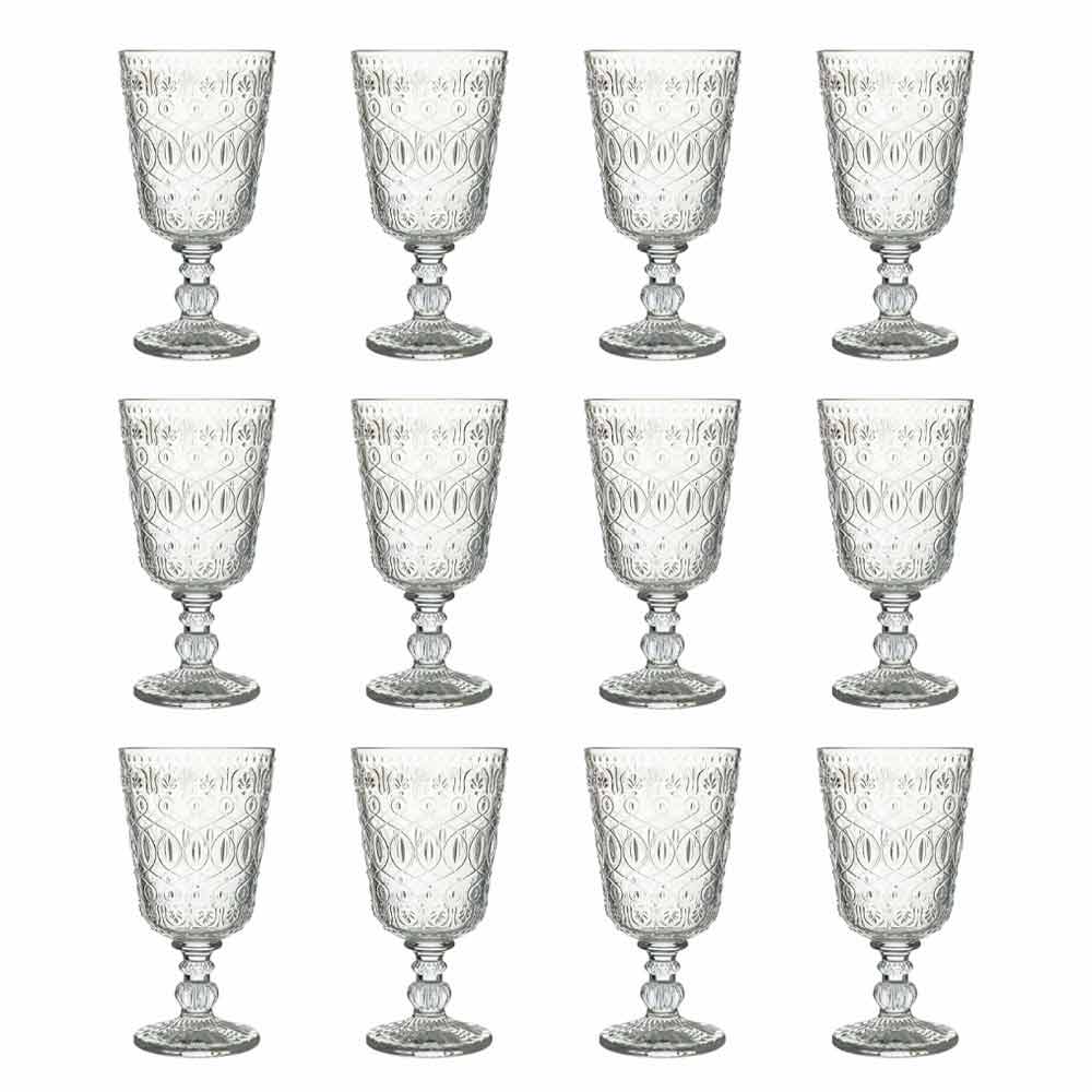 12 pahare de vin în sticlă transparentă decorată, ideale și pentru masa de Crăciun.