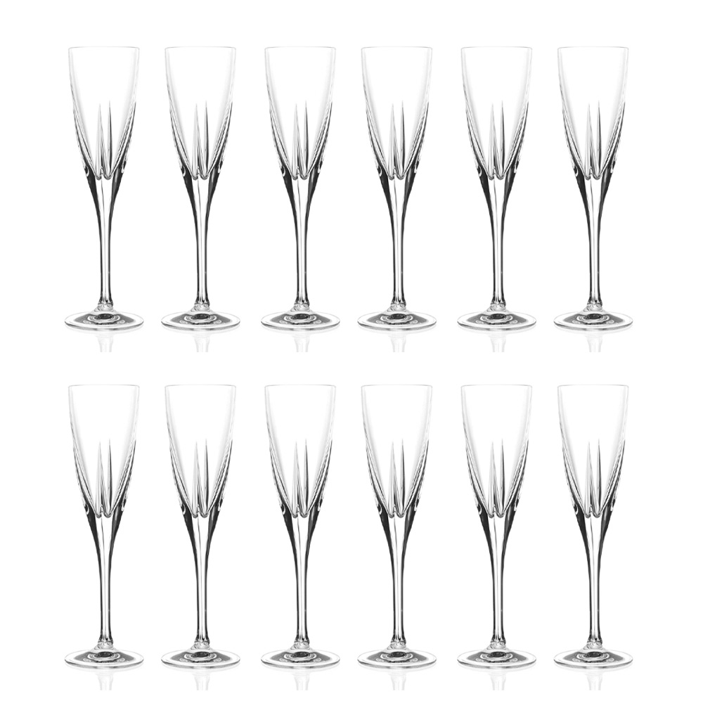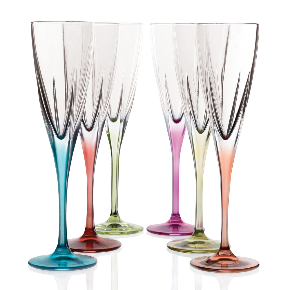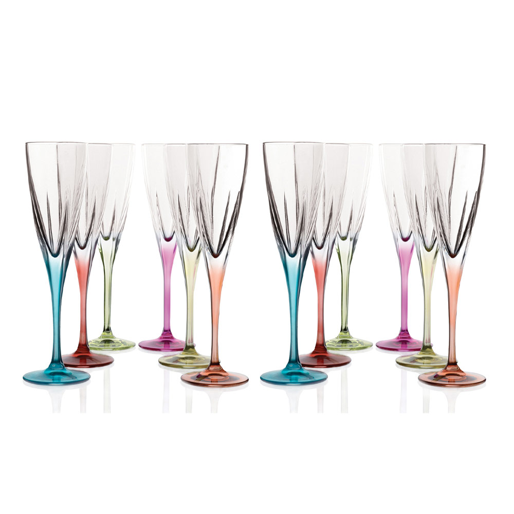 Set de pahare pentru flaut în cristal ecologic transparent sau colorat, 12 piese fabricate în Italia.