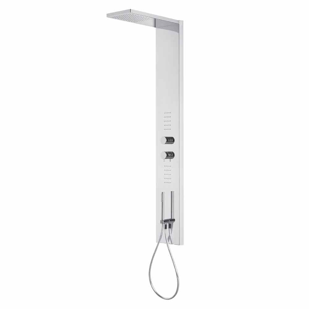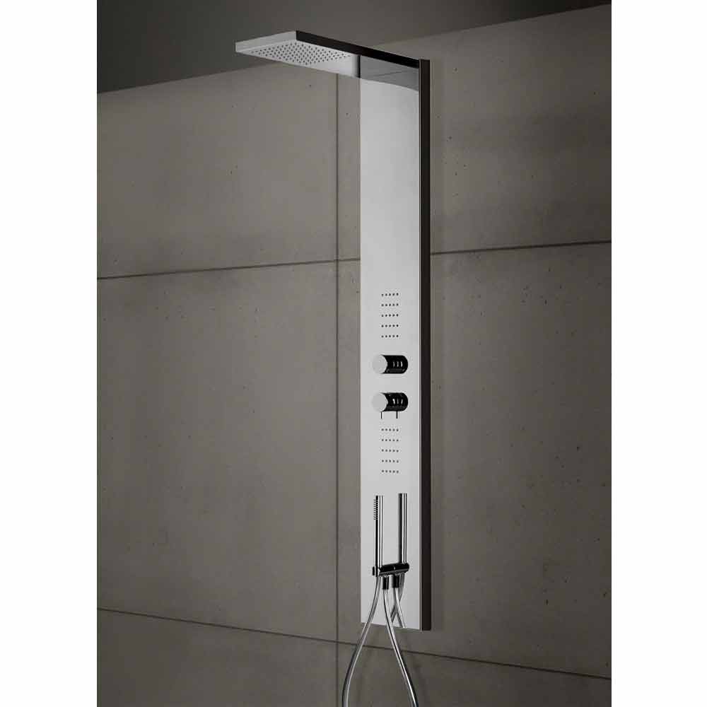 Coloana de dus cu panou de otel cu trei iesiri cu cap de dus cu efect de ploaie, produs de inalta calitate Made in Italy.
