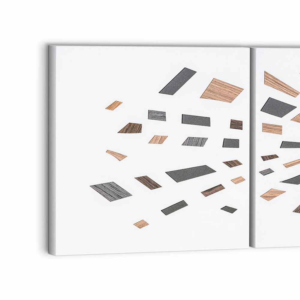 Panou decorativ de perete din pânză cu aplicații din lemn Made in Italy.