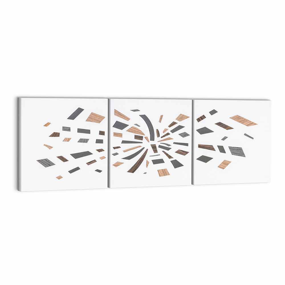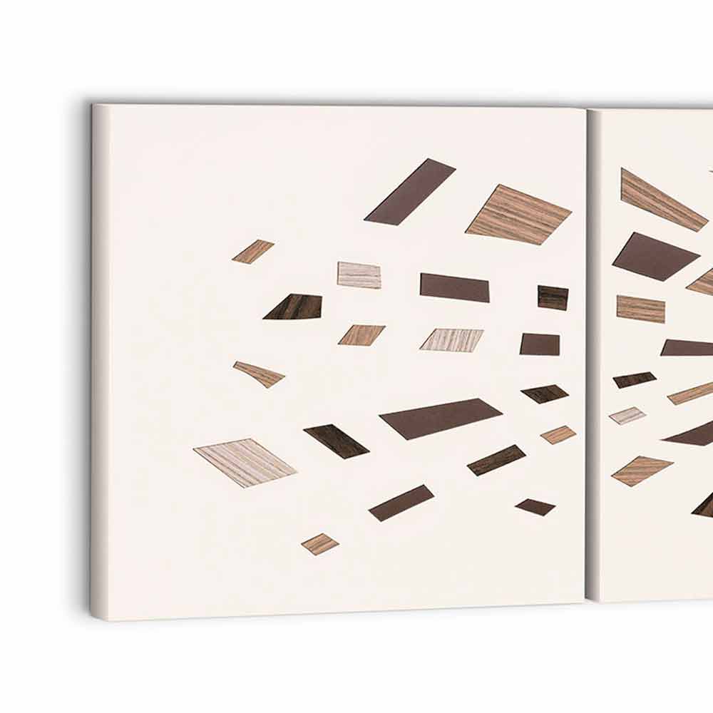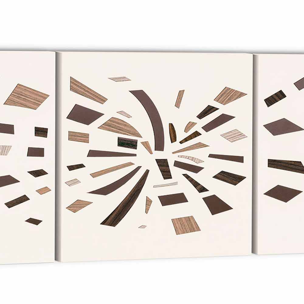 aplicații din lemn laminat și ton-pe-ton caracterizat prin esențe diferite și nuanțe de culoare. Trei panouri unite pentru a da viață unui rezultat cu un design minunat echilibrat, precum și textura și culorile deosebite care îl fac o adevărată operă de artă, un complement perfect pentru decoruri cu o puternică