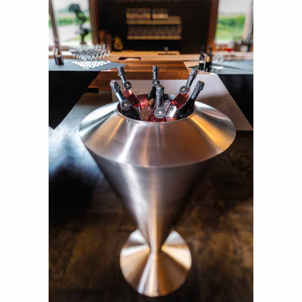 Pardoseală modernă Frappeuse din oțel inoxidabil, cu suport de sticle Made in Italy de înaltă calitate.