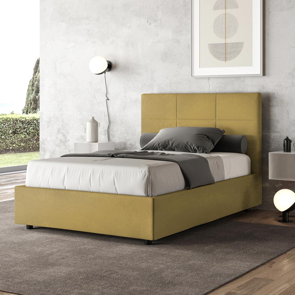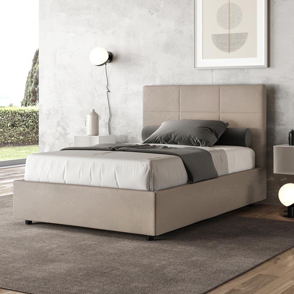 Pat queen-size căptușit, 120x200 cm, realizat din panouri din PAL și acoperit cu microfibră , fabricat în întregime în Italia. Acest pat, cu cadrul său căptușit, este exemplul perfect al modului în care eleganța și confortul pot fi combinate într-o singură piesă de mobilier. Acest model se caracterizează prin tăblia îmbogățită cu...Modele geometrice dreptunghiulare . Acoperită cu microfibră, este ușor de curățat: folosiți doar o lavetă din microfibră pentru o curățare rapidă și eficientă.