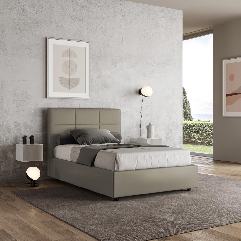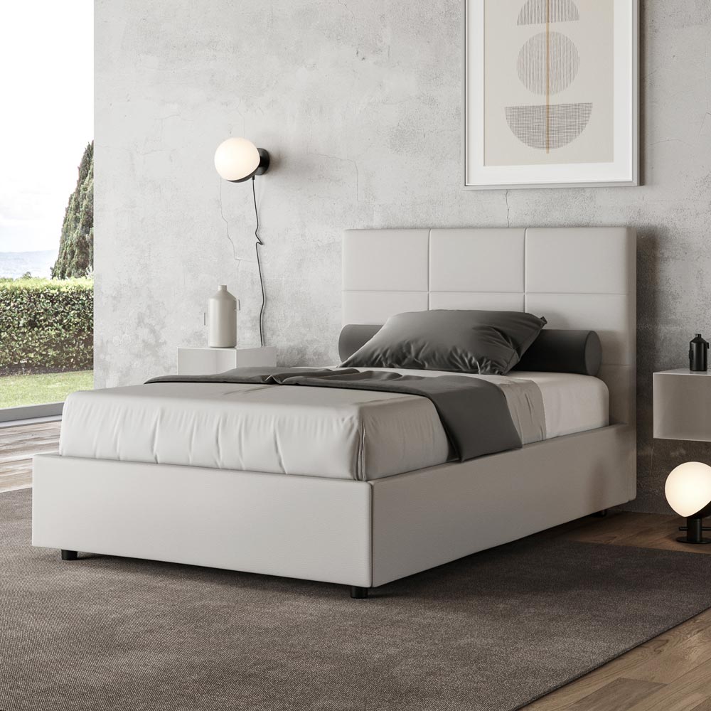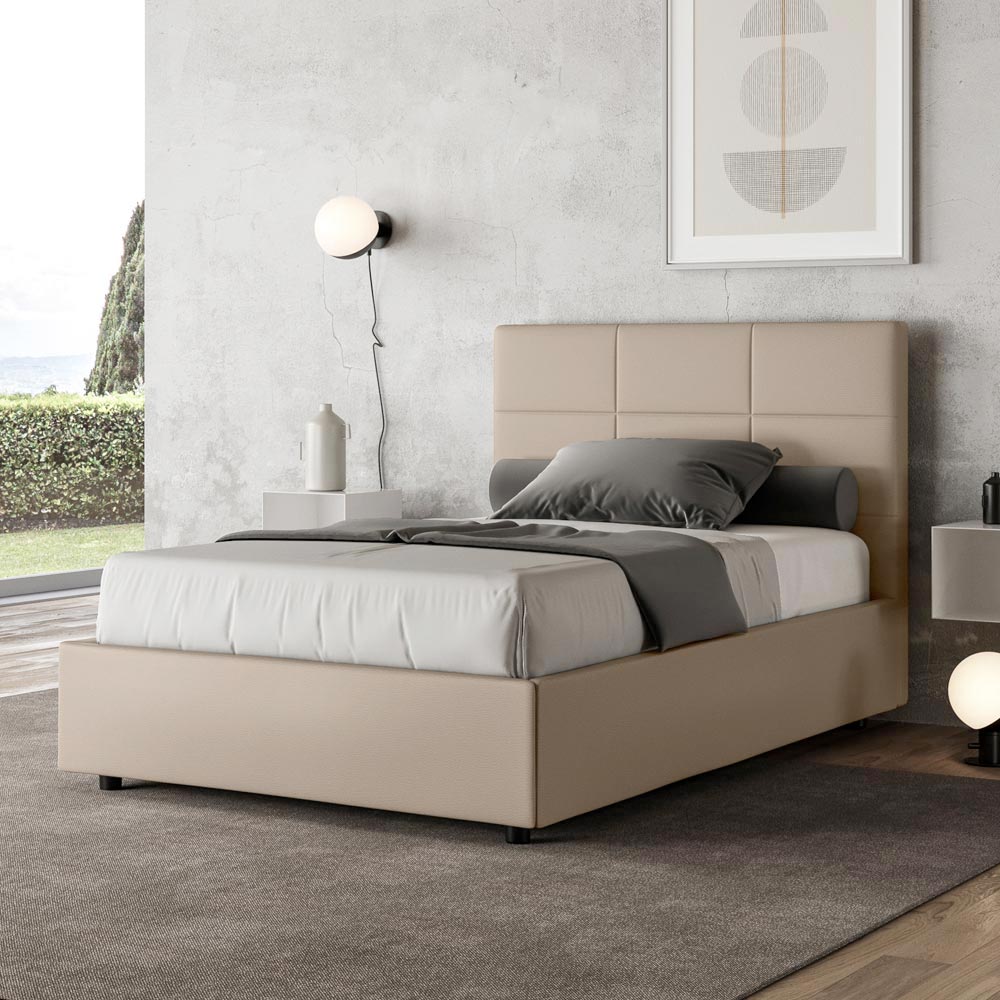 Pat francez 140x200 cm căptușit cu panouri melaminate și acoperit cu imitație de piele , fabricat în întregime în Italia. Acest pat, cu cadrul său căptușit, este exemplul perfect al modului în care eleganța și confortul pot fi combinate într-o singură piesă de mobilier. Acest model se caracterizează prinTăblie îmbogățită cu modele geometrice dreptunghiulare . Tapițată cu piele ecologică, este ușor de curățat: o singură lavetă din microfibră este suficientă pentru o curățare rapidă și eficientă.