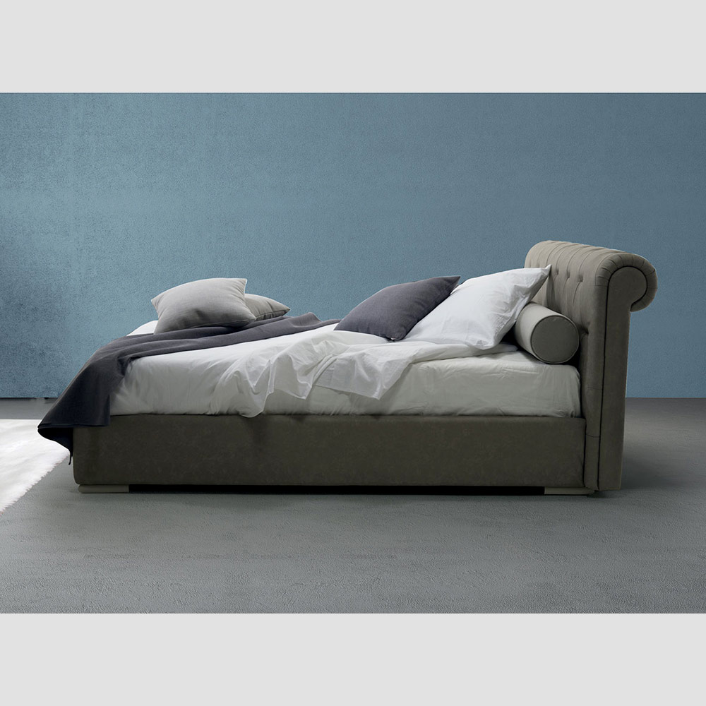 Pat dublu tapițat de lux din material textil sau piele ecologică, realizat manual în Italia cu cutie de depozitare.
