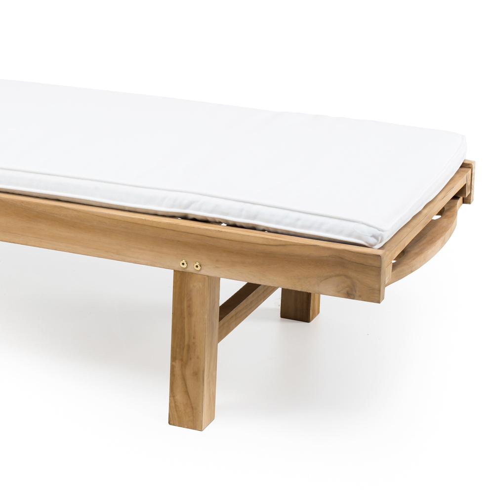 Șezlong de grădină din lemn de tec natural cu tavă detașabilă.