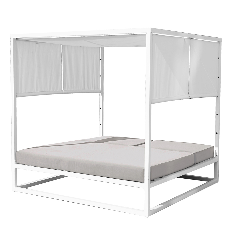 Pat de gradina din aluminiu alb cu perne detasabile (pentru asamblare) din piele sintetica de culoare gri deschis. Designul său este simplu și atemporal, pentru a face orice tip de mediu perfect. Este un element deosebit cu un impact puternic, esential pentru cei care doresc sa se bucure de un confort optim in spatiu deschis.