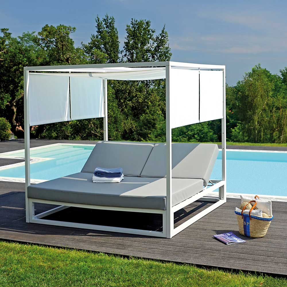 Această colecție de mobilier de lux oferă o notă de eleganță modernă tuturor spațiilor, fără a renunța niciodată la o atmosferă incitantă și extrem de scenografică . Valabil pentru orice tip de mediu exterior, acest pat de zi va da un sentiment de lux si rafinament mediului in care va fi destinat. Patul de zi întruchipează structuri rigide și rezistente pentru odihnă și sprijin, precum și rezistență la impact și schimbări climatice.
