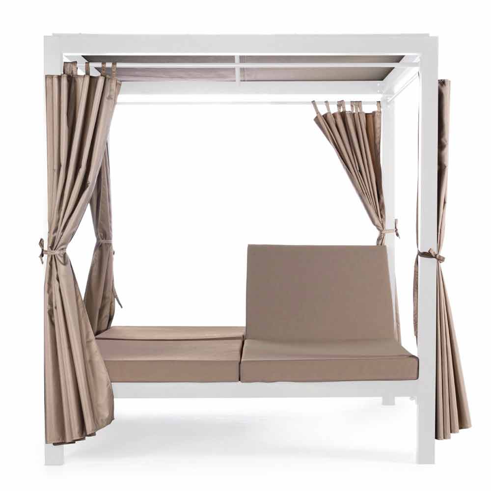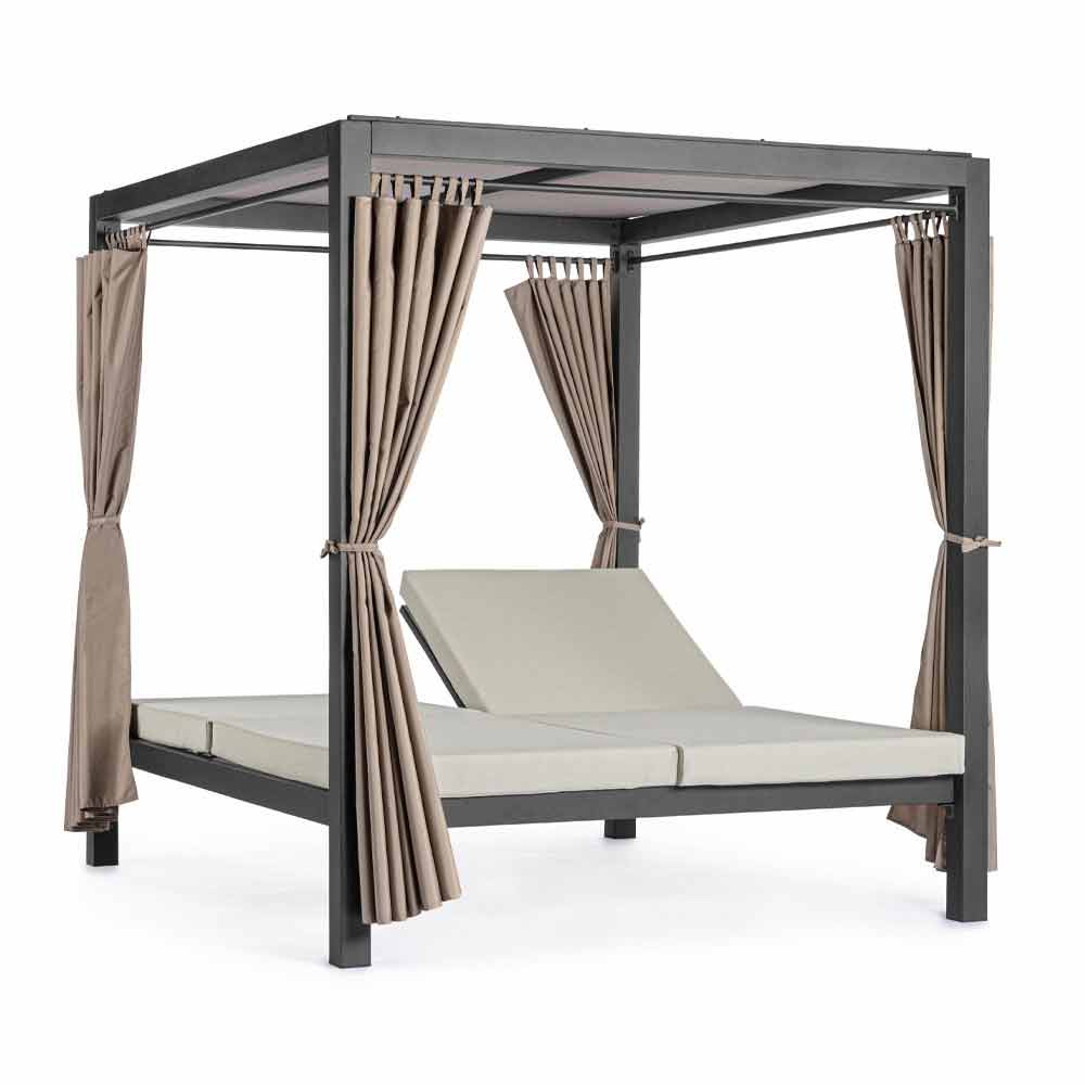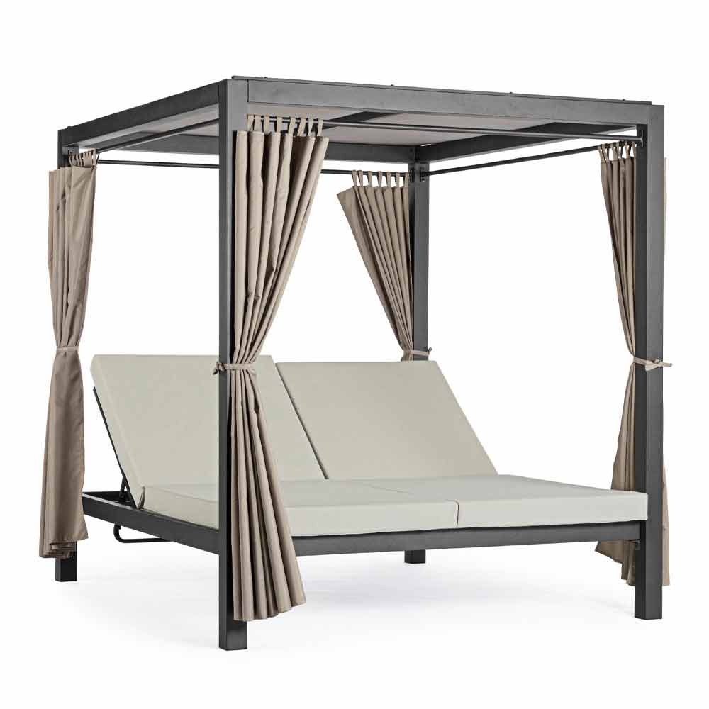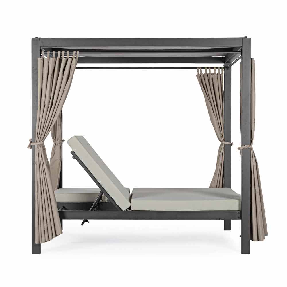 Pat de zi în aer liber din aluminiu și textilenă cu spătarele reclinabile.