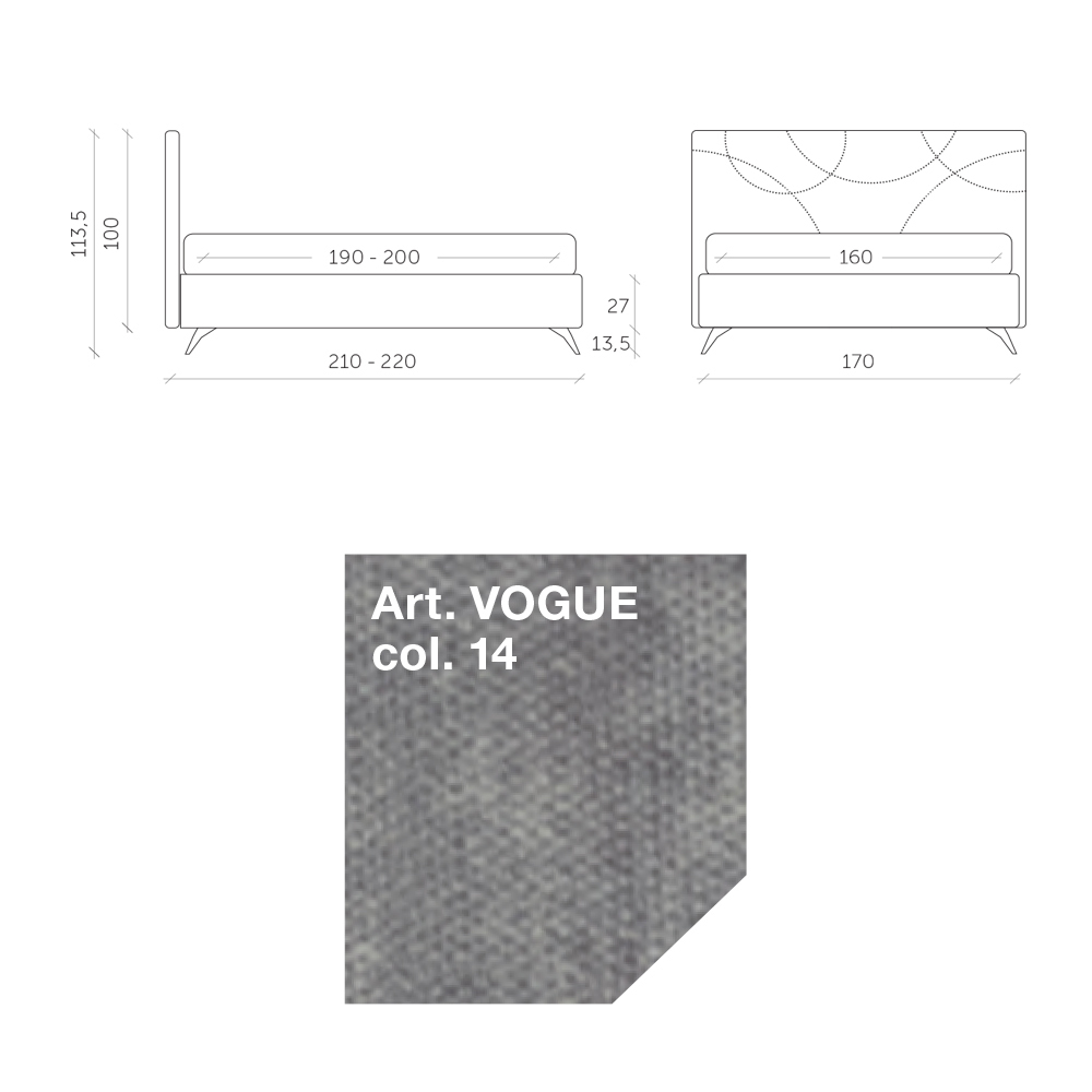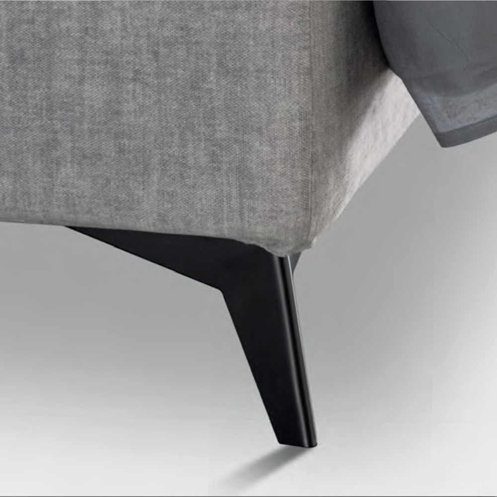 metalice cu finisaj antracit (inaltime 13,5 cm) si tablie de pat groasa din material ignifug, realizata printr-un proces special de matlasare a curbelor incrucisate care ii evidentiaza moliciunea si ii confera o personalitate puternica.