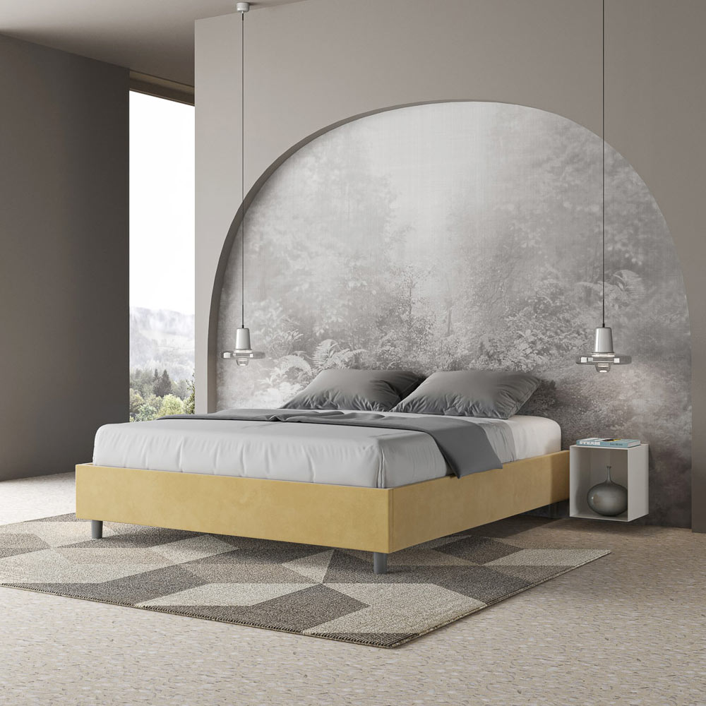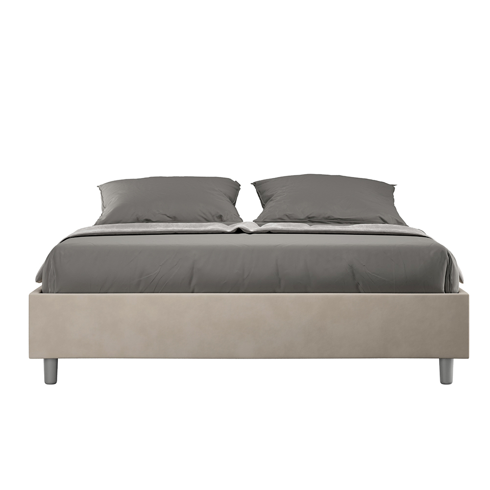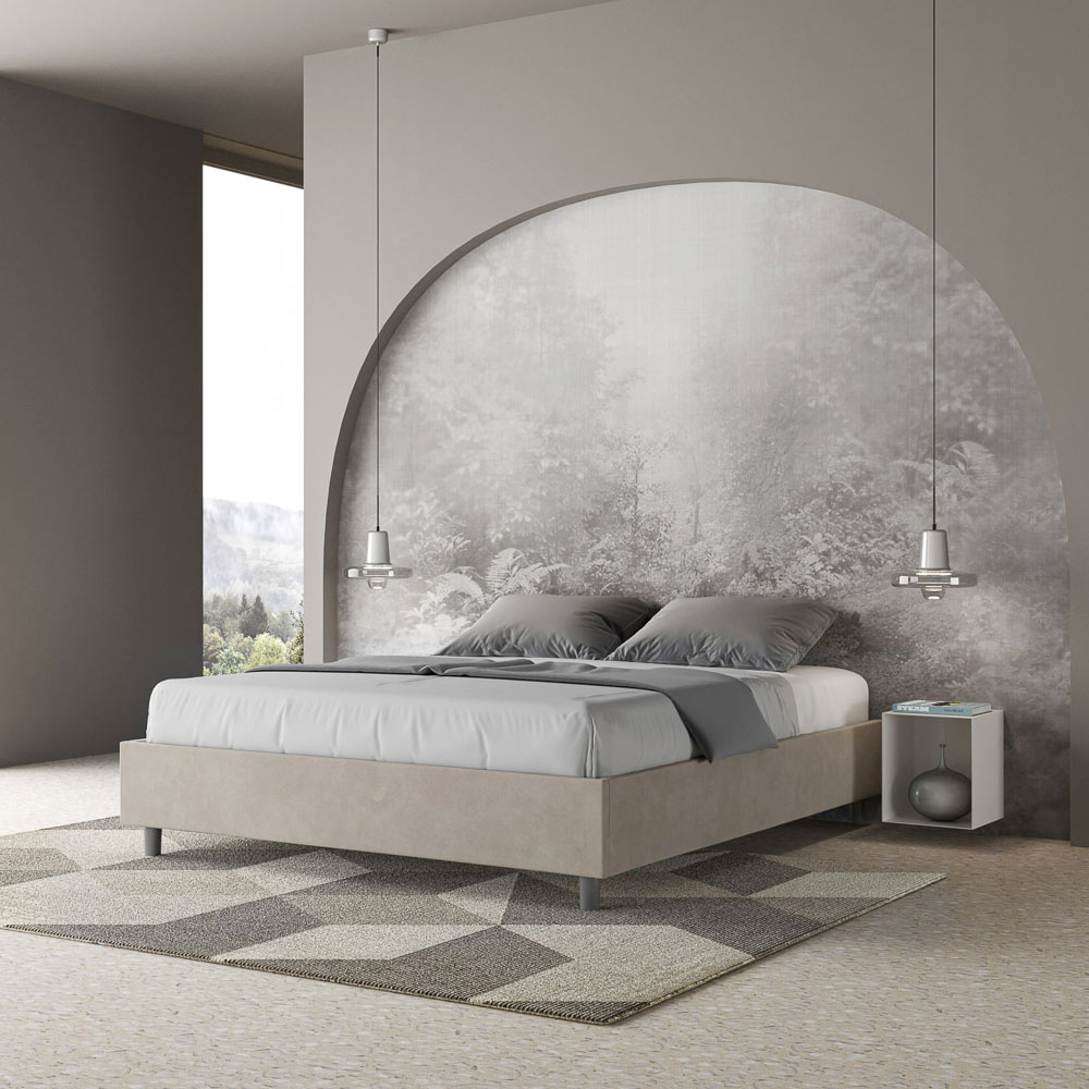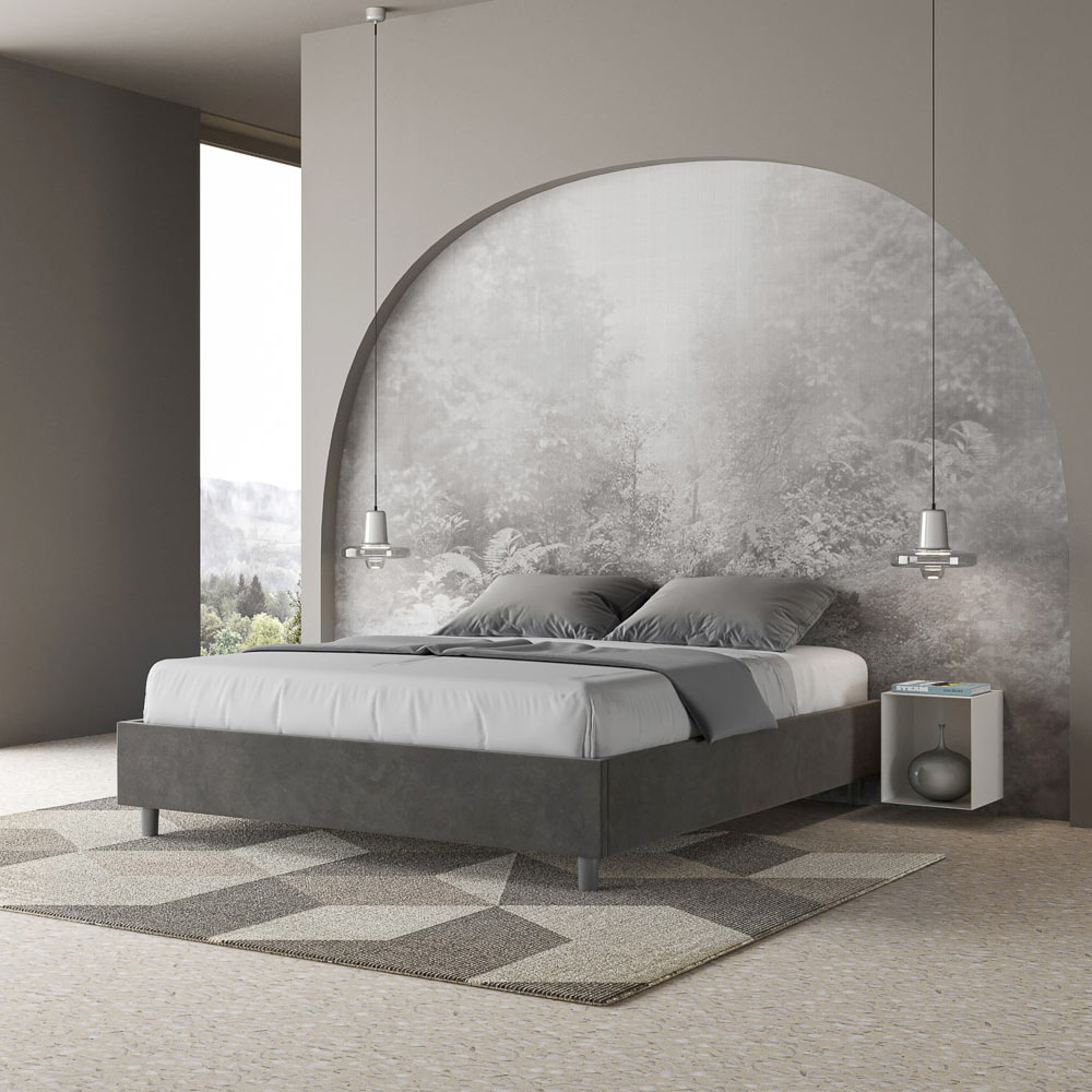 Pat dublu căptușit 160x200 cm, realizat din panouri din PAL și acoperit cu microfibră , fabricat în întregime în Italia. Acest pat dublu se remarcă prin designul său curat și minimalist . Estetica sa discretă și versatilitatea îl fac ușor de integrat în orice decor. Una dintre caracteristicile sale definitorii este absența unei tăblii tradiționale , ceea ce îl face ideal pentru amplasarea în spații unice, cum ar fi sub o fereastră, într-o mansardă sau lângă un perete decorativ, fără a obstrucționa vederea sau a obține efectul dorit.