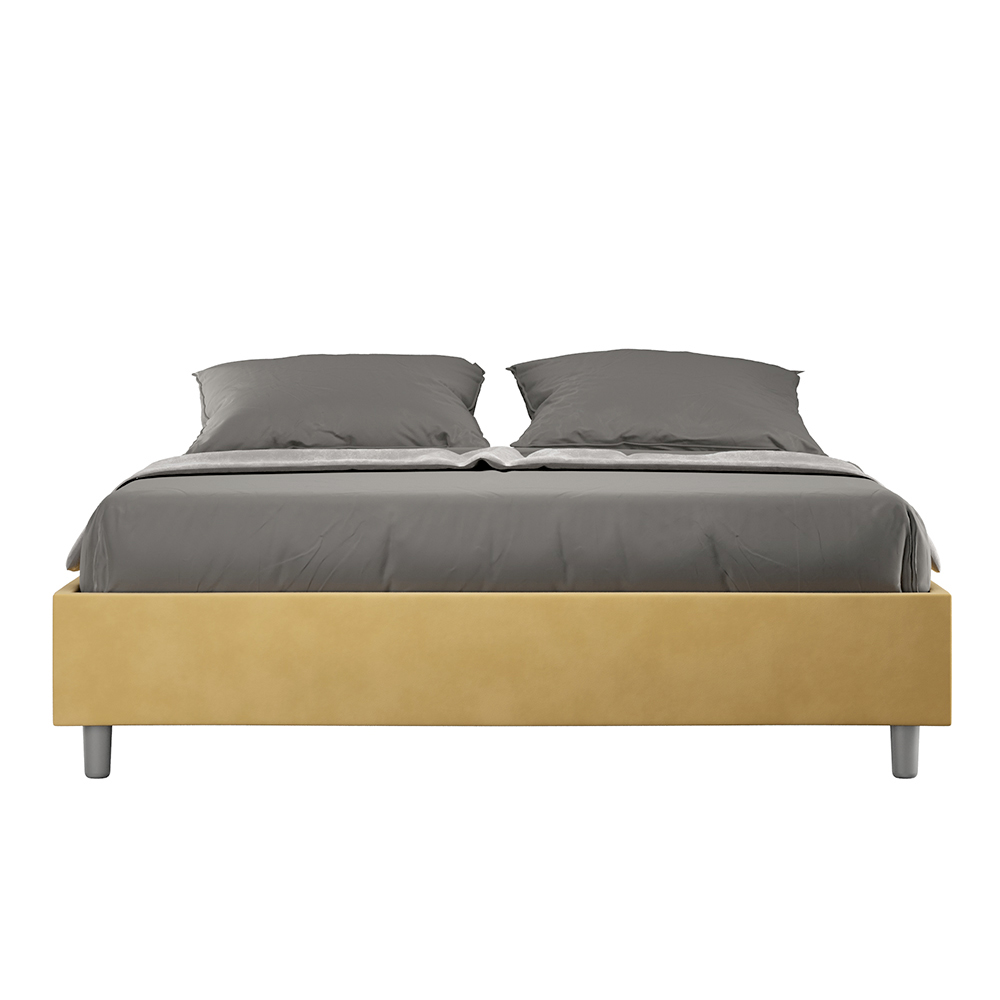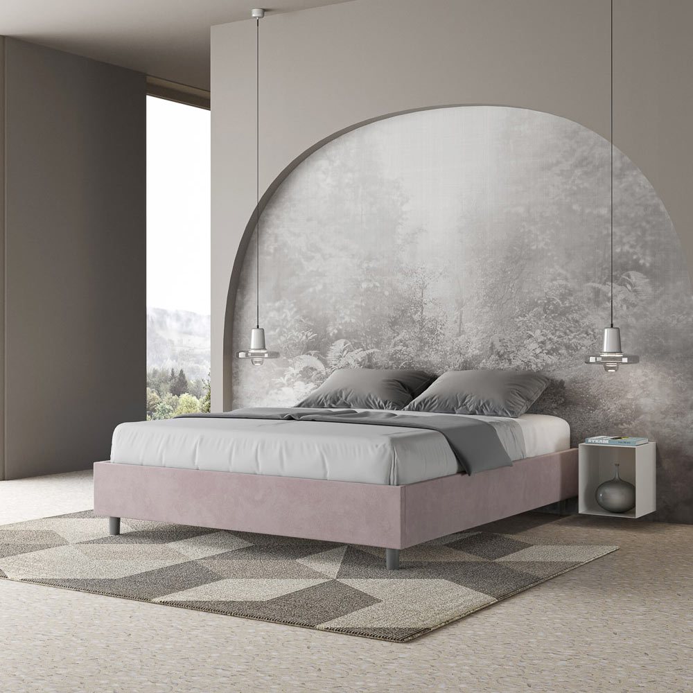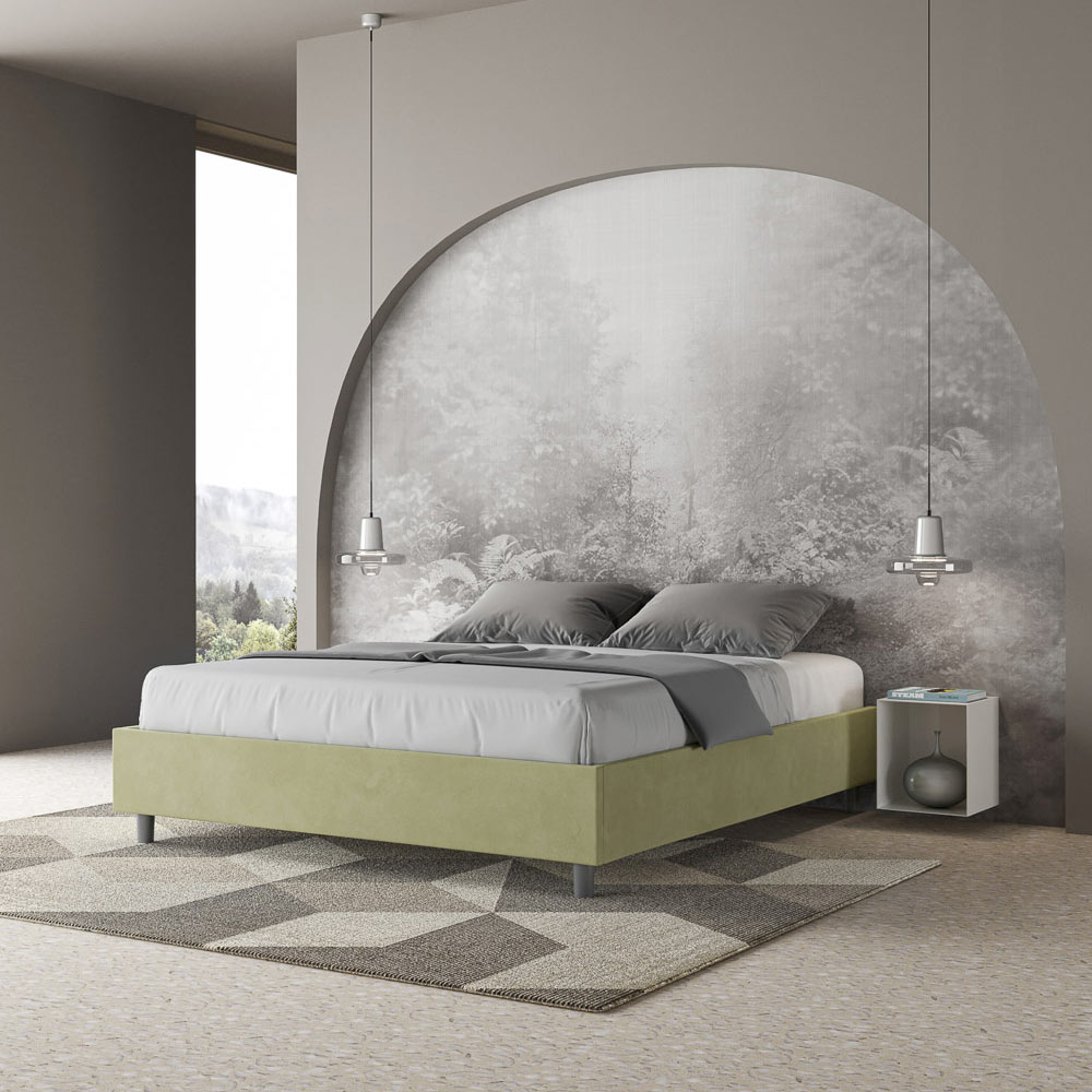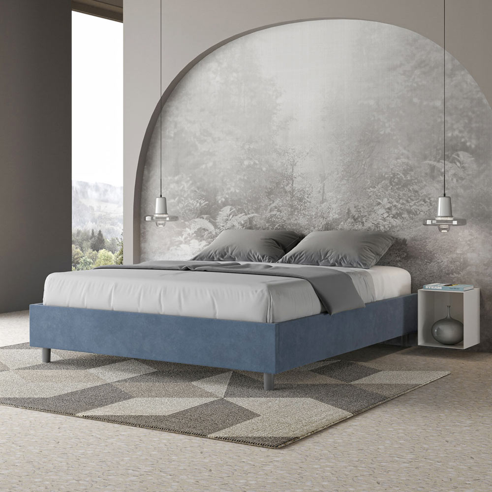 Pat dublu căptușit 160x200 cm, realizat din panouri din PAL și acoperit cu microfibră , fabricat în întregime în Italia. Acest pat dublu se remarcă prin designul său curat și minimalist . Estetica sa discretă și versatilitatea îl fac ușor de integrat în orice decor. Una dintre caracteristicile sale definitorii este absența unei tăblii tradiționale , ceea ce îl face ideal pentru amplasarea în spații unice, cum ar fi sub o fereastră, într-o mansardă sau lângă un perete decorativ, fără a obstrucționa vederea sau a obține efectul dorit.