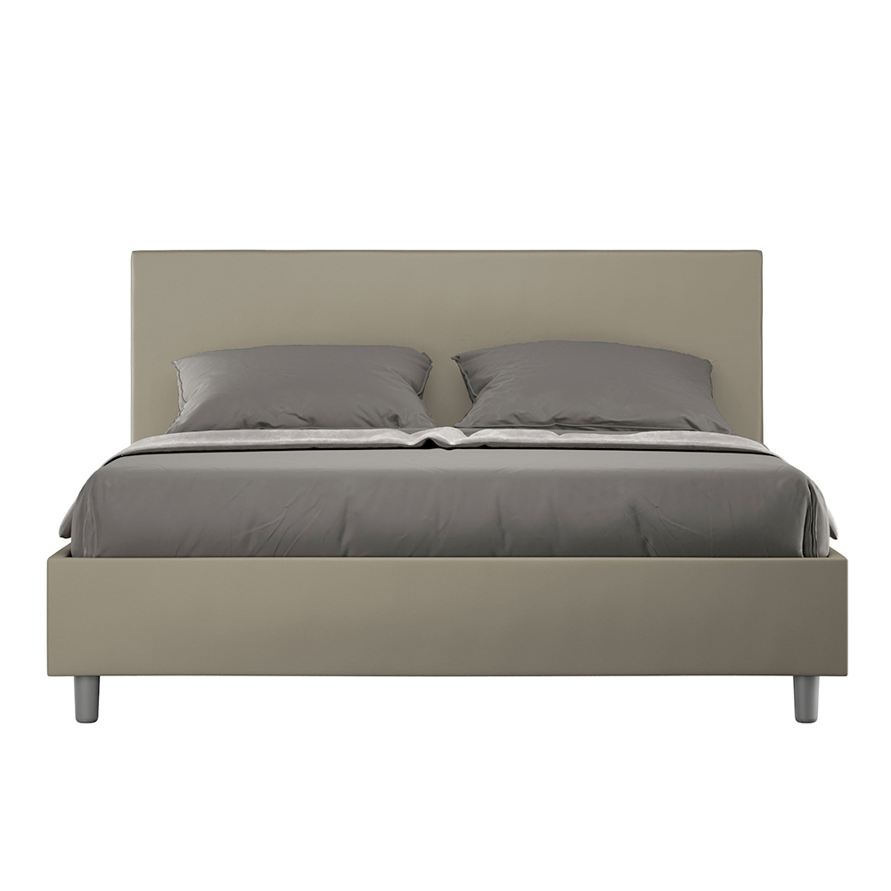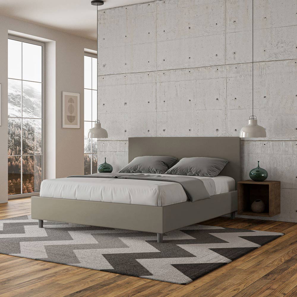 Pat dublu căptușit 160x200 cm, realizat din panouri din PAL și acoperit cu imitație de piele , fabricat în întregime în Italia. Acest pat dublu are un cadru căptușit și este o icoană a stilului discret, dar elegant. Având o tăblie din piele ecologică , acest pat se integrează perfect în orice spațiu, adăugând o notă distinctivă de clasă și lux, tipic italiană. Întreținerea este ușoară: ștergeți-l pur și simplu cu o lavetă din microfibră pentru a-i păstra frumusețea în timp.