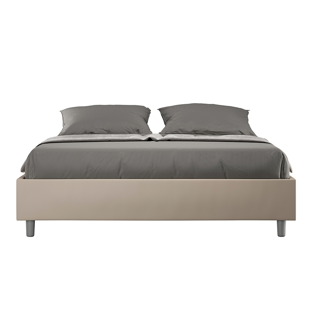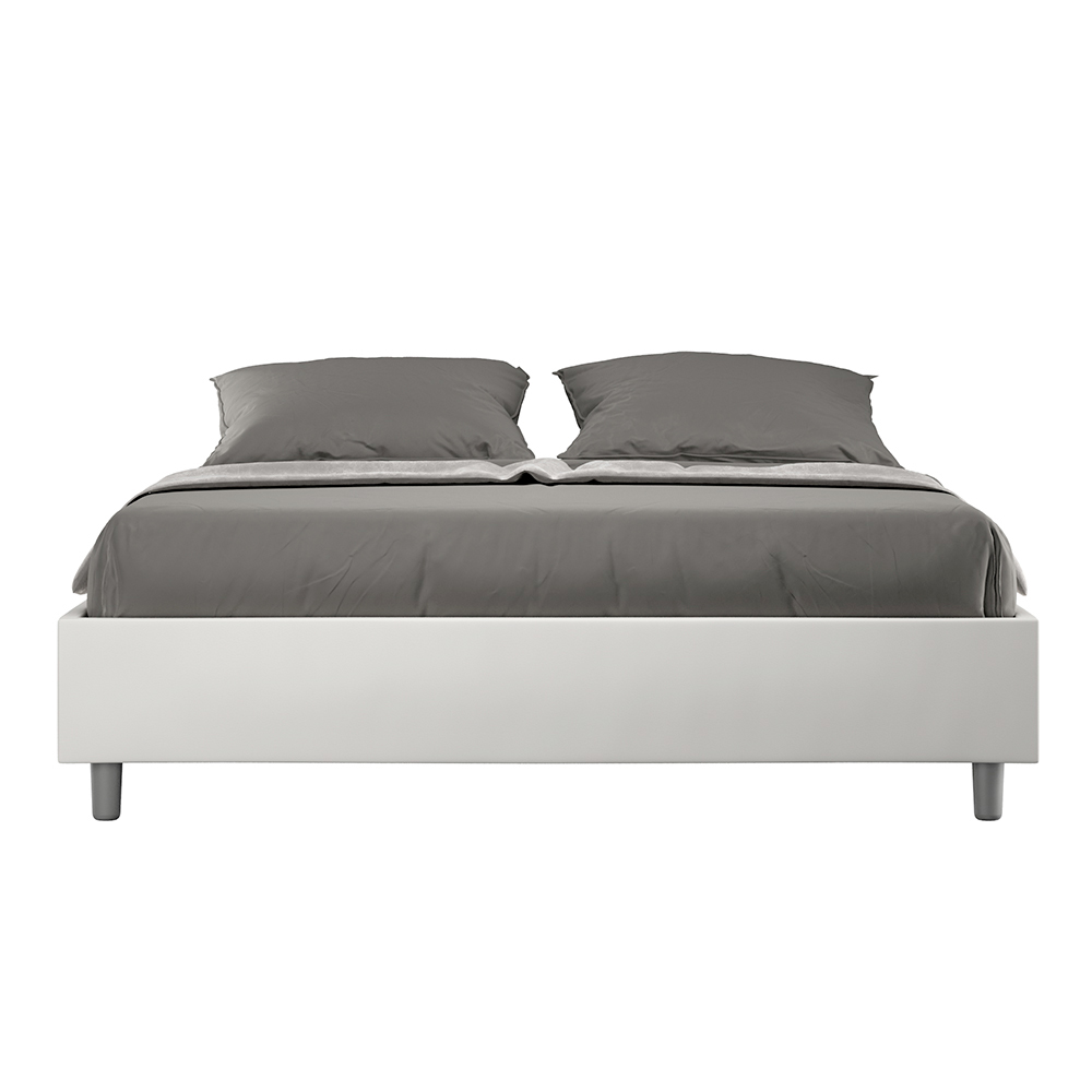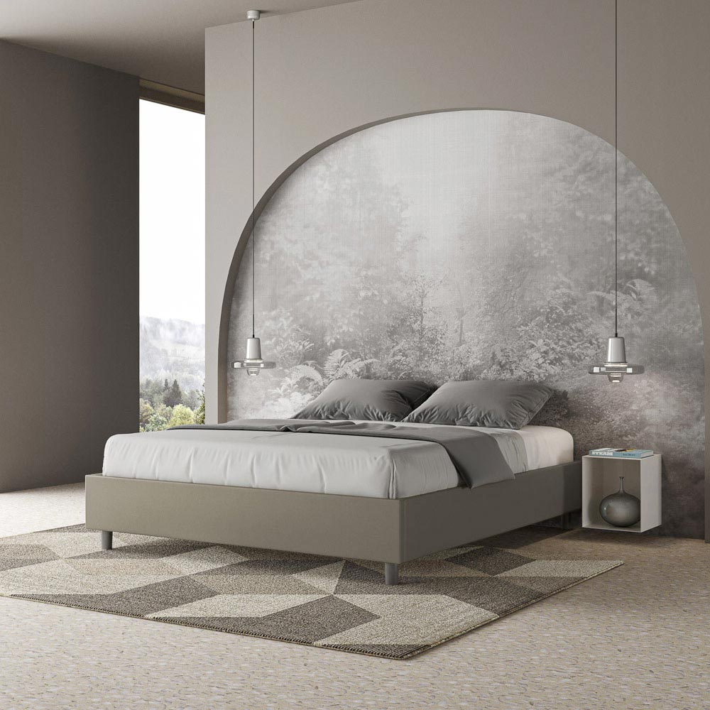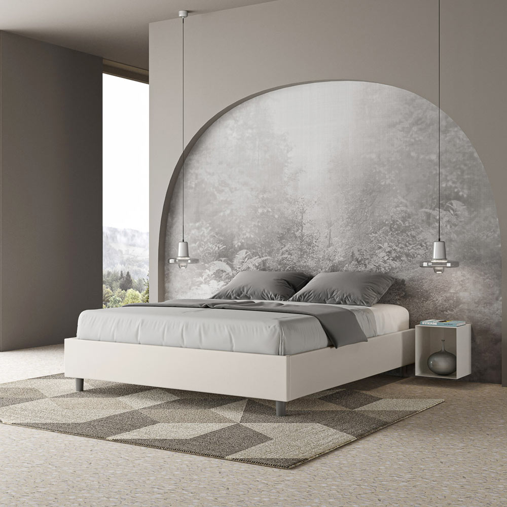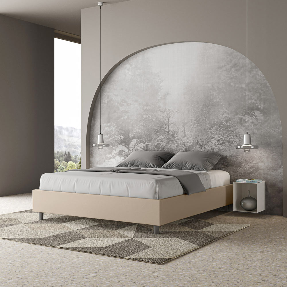 Pat dublu căptușit 160x200 cm, realizat din panouri din PAL și acoperit cu imitație de piele , fabricat în întregime în Italia. Acest pat dublu se remarcă prin designul său curat și minimalist . Estetica sa discretă și versatilitatea îl fac ușor de integrat în orice decor. Una dintre caracteristicile sale definitorii este absența unei tăblii tradiționale , ceea ce îl face ideal pentru amplasarea în spații unice, cum ar fi sub o fereastră, într-o mansardă sau lângă un perete decorativ, fără a obstrucționa vederea sau a obține efectul dorit.