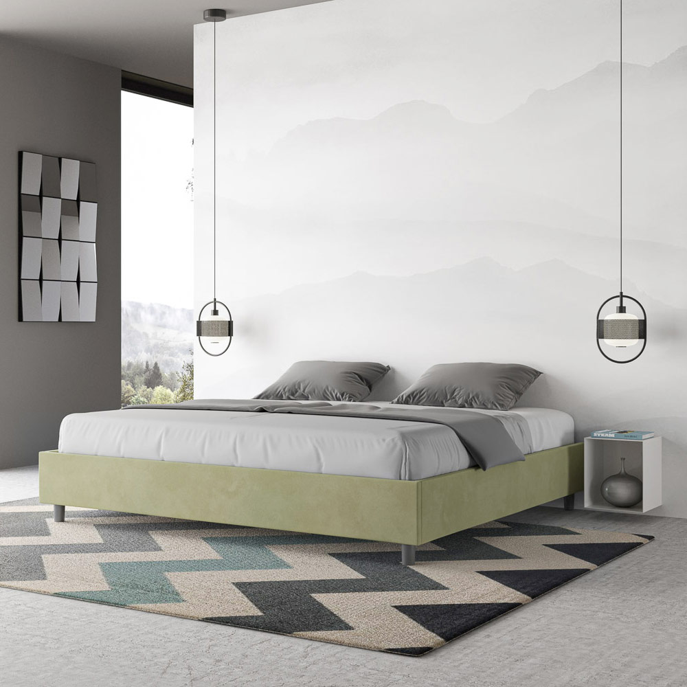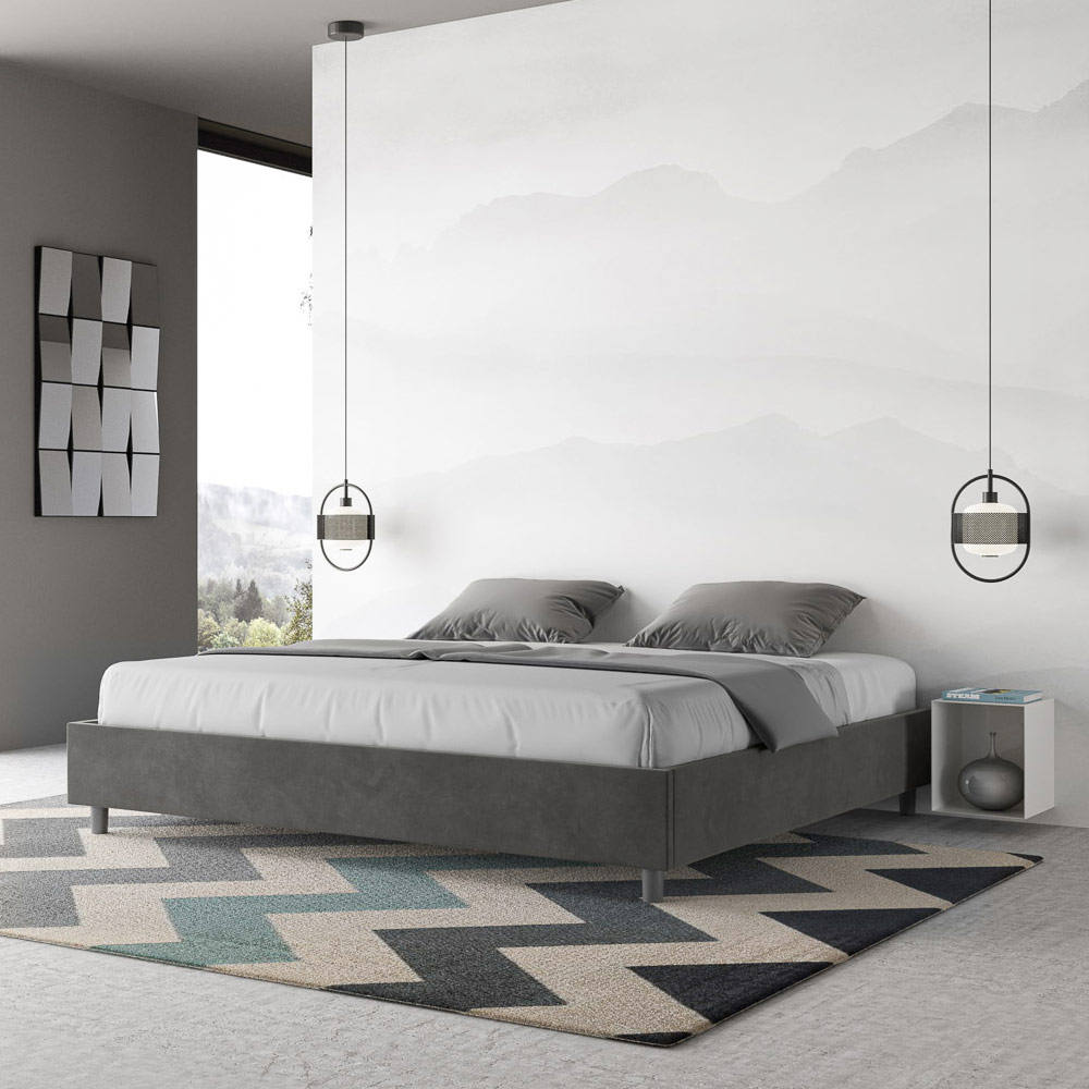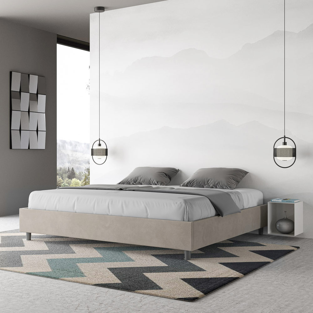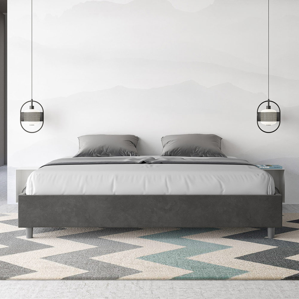 Pat king size 180x200 cm, căptușit cu panouri de melamină și acoperit cu microfibră , fabricat în întregime în Italia. Acest pat king-size se remarcă prin designul său curat și minimalist . Estetica sa discretă și versatilitatea îl fac ușor de integrat în orice decor. Una dintre caracteristicile sale definitorii este absența unei tăblii tradiționale , ceea ce îl face ideal pentru amplasarea în spații unice, cum ar fi sub o fereastră, într-o mansardă sau lângă un perete decorativ, fără a obstrucționa vederea sau a obține efectul dorit.