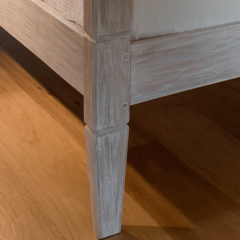 Patul este realizat manual din lemn uscat natural, un material viu care poate suferi mișcări naturale în timp. Orice agățături sau mici crăpături sunt inerente lemnului și pot apărea chiar și în timp.