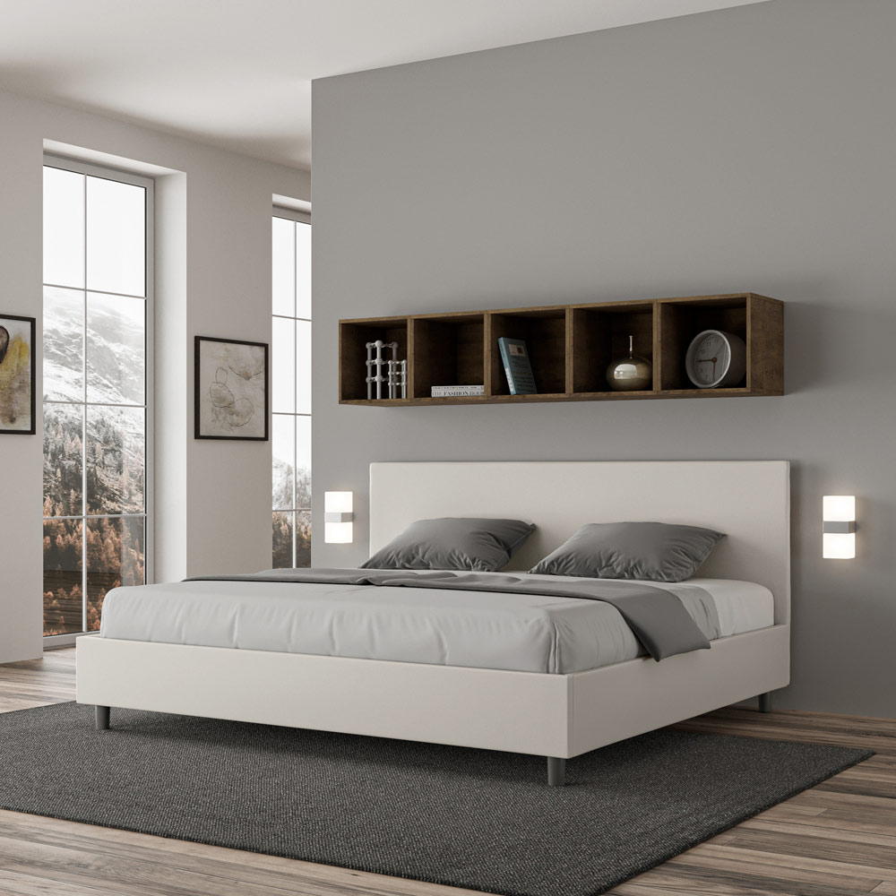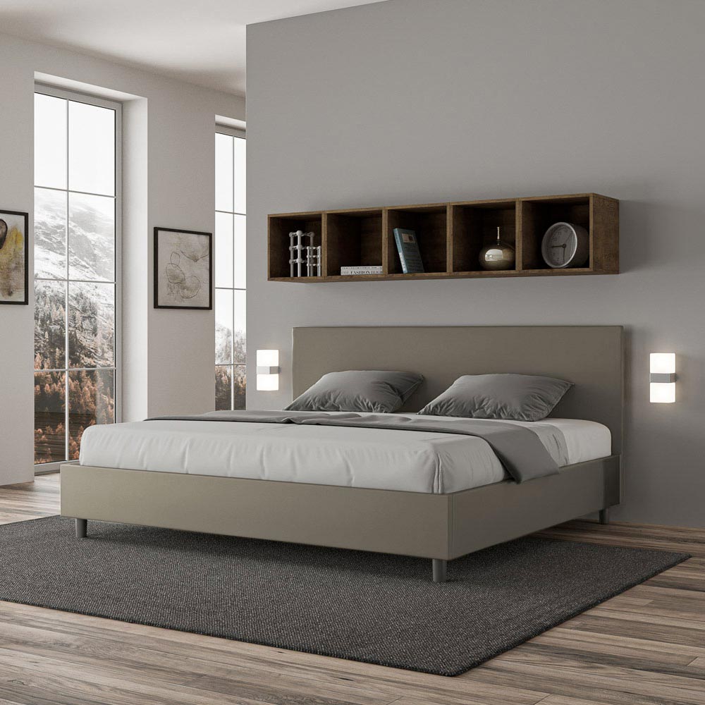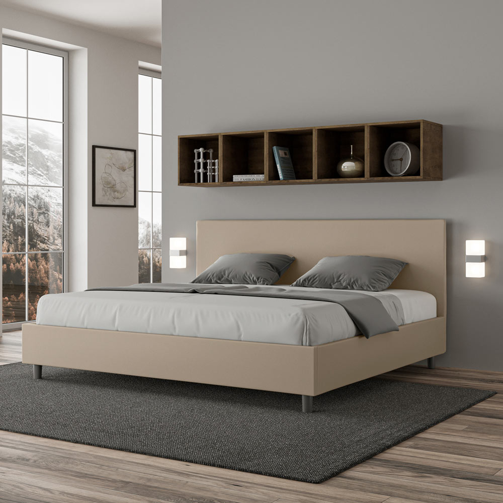 Pat super king size 200x200 cm, căptușit cu panouri melaminate și acoperit cu imitație de piele , fabricat în întregime în Italia. Acest pat super king-size are un cadru căptușit și este o icoană a stilului discret, dar elegant. Având o tăblie din piele ecologică , acest pat se integrează perfect în orice spațiu, adăugând o notă distinctivă de clasă și lux, tipic italiană. Întreținerea este ușoară: ștergeți pur și simplu cu o lavetă din microfibră pentru a-i păstra frumusețea în timp.