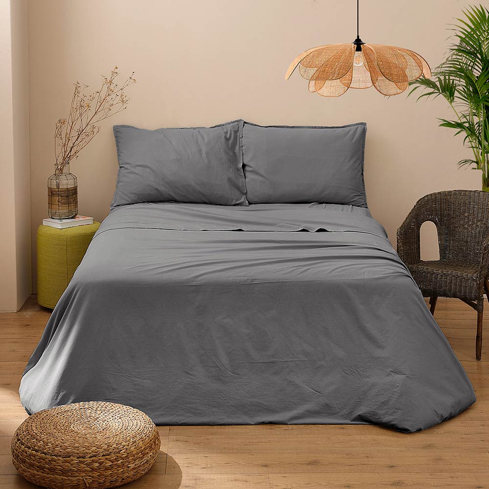 set de pat dublu din bumbac pur vopsit în haine . Textura moale și respirabilă a bumbacului asigură un confort de neegalat, în timp ce tehnica de vopsire a hainelor conferă o culoare bogată și de lungă durată, care durează spălare după spălare. Perfect pentru cei care doresc să combine stilul și funcționalitatea, acest set include cearșafuri de sus și de jos și fețe de pernă coordonate, toate concepute pentru a vă oferi confort maxim și pentru a adăuga o notă de rafinament camerei dvs.