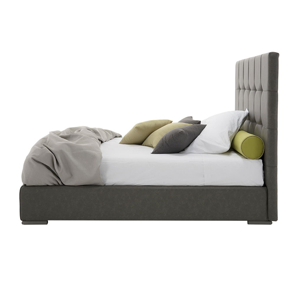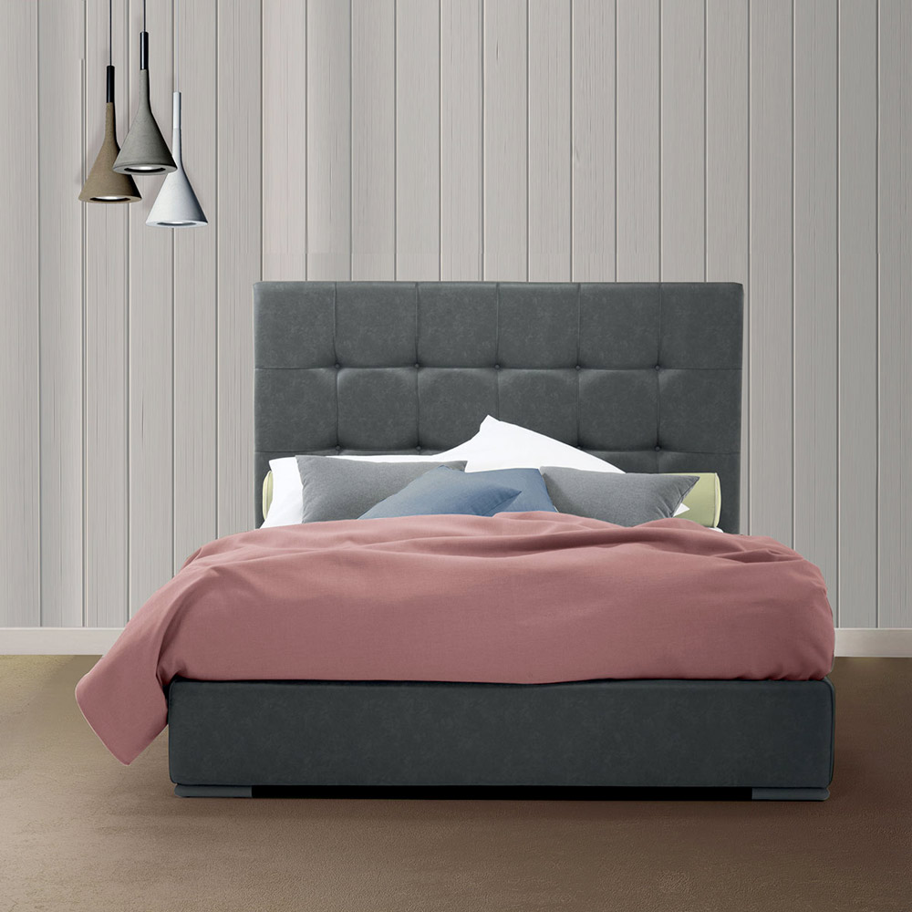 Pat dublu de înaltă calitate, cu tăblie king size și cutie de depozitare, realizat manual în Italia, din material textil sau piele ecologică.