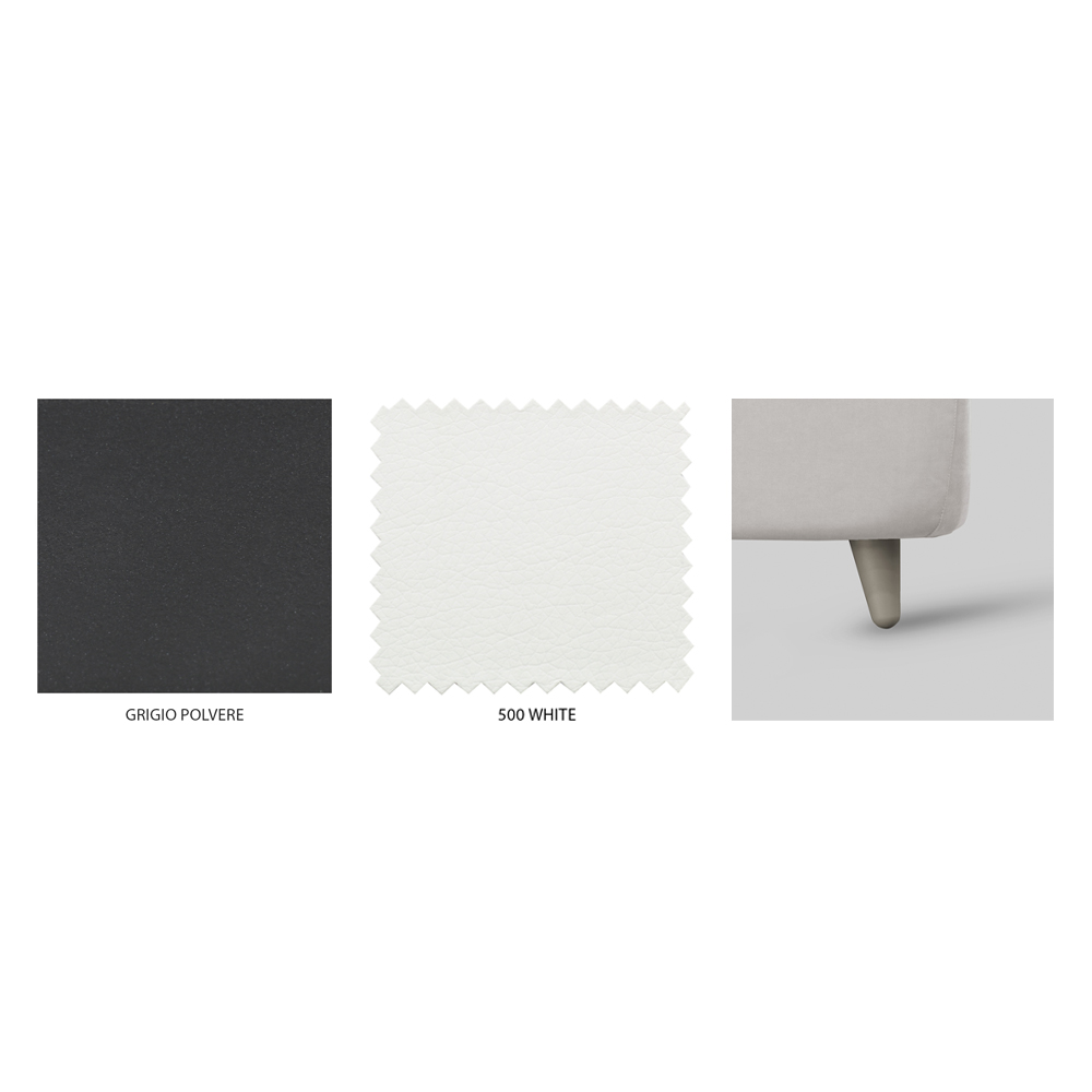 Finisaje disponibile:- Model H 11 picioare: tăblie gri pudra, cadru de pat din piele ecologică albă și picioare din polipropilenă gri porumbel
