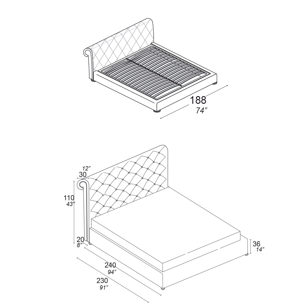 Patul este un exemplu elegant de măiestrie italiană. Cu un cadru robust si o tablie captusita care promite confort, acest pat este o invitatie la relaxare. Tapițeria din piele de înaltă calitate, combinată cu detalii croite, îmbunătățește aspectul rafinat al patului. Picioarele subțiri și rafinate adaugă o notă de modernitate designului clasic. Este un pat care îmbină tradiția și modernitatea, oferind confort superior și o estetică care va completa frumos orice mediu de dormit contemporan sau tradițional.