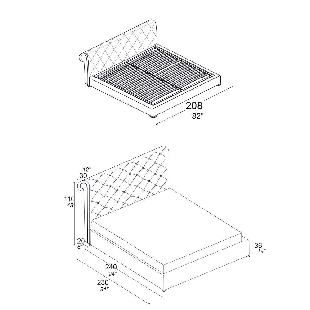 - lungime: 208 cm x adancime: 240 cm x inaltime: 110 cm - potrivita pentru o saltea de 180x200 cm