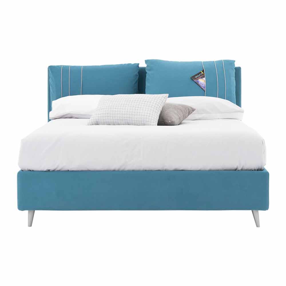 Pat dublu cu container imbracat in stofa detasabila disponibil cu tablie in trei variante Made in Italy.