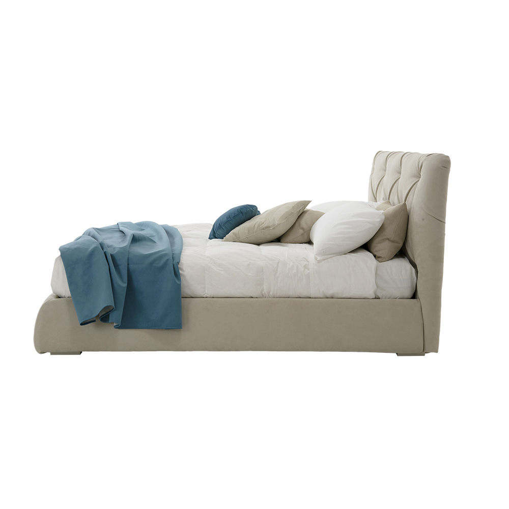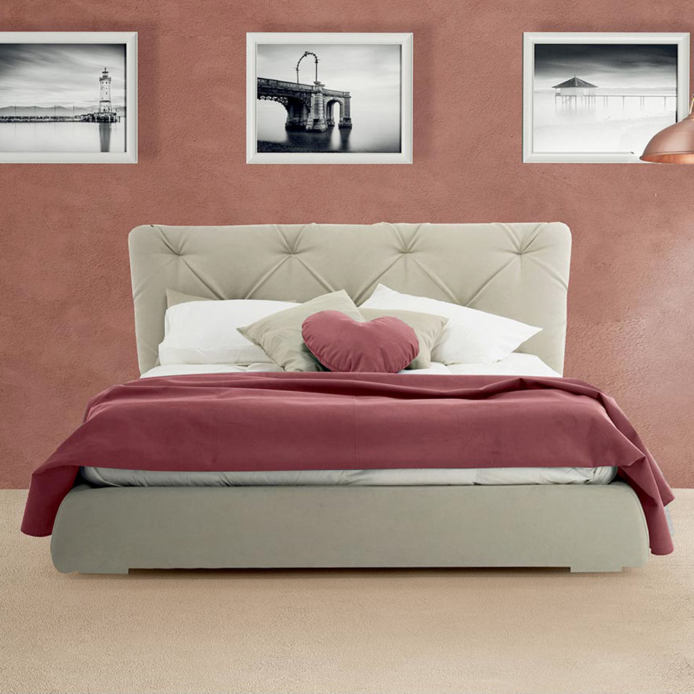 Pat dublu modern cu container, căptușit și îmbrăcat în țesătură sau piele ecologică realizat manual în Italia.
