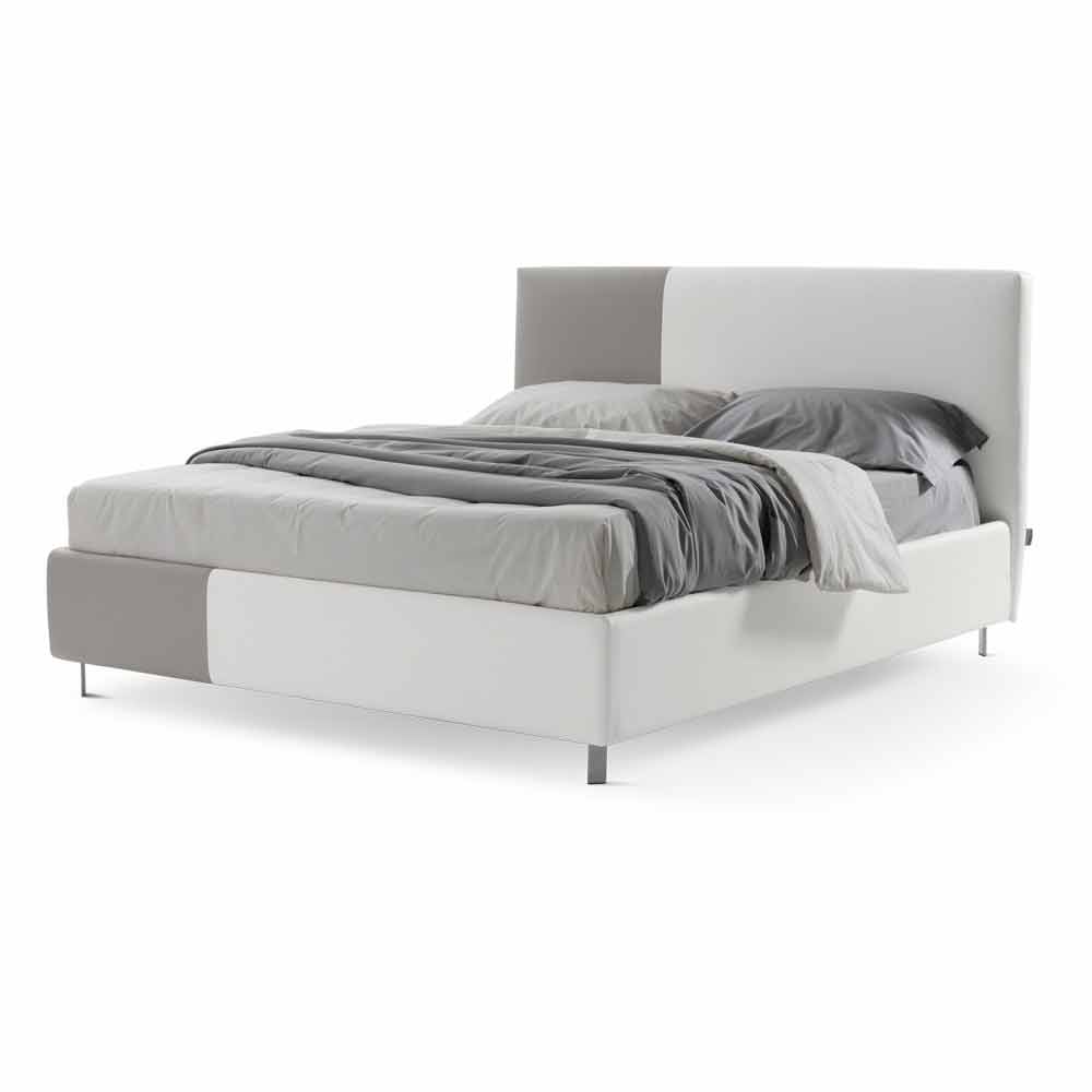 Pat dublu cu container de lux din piele ecologică bi-ton gri și alb, realizat manual în Italia.